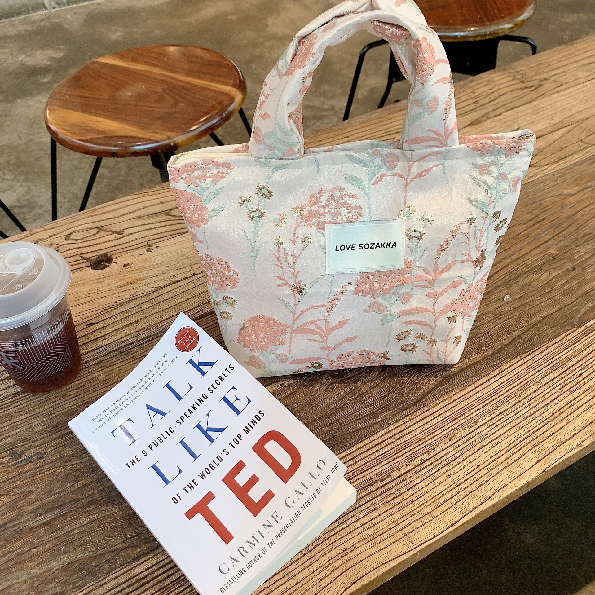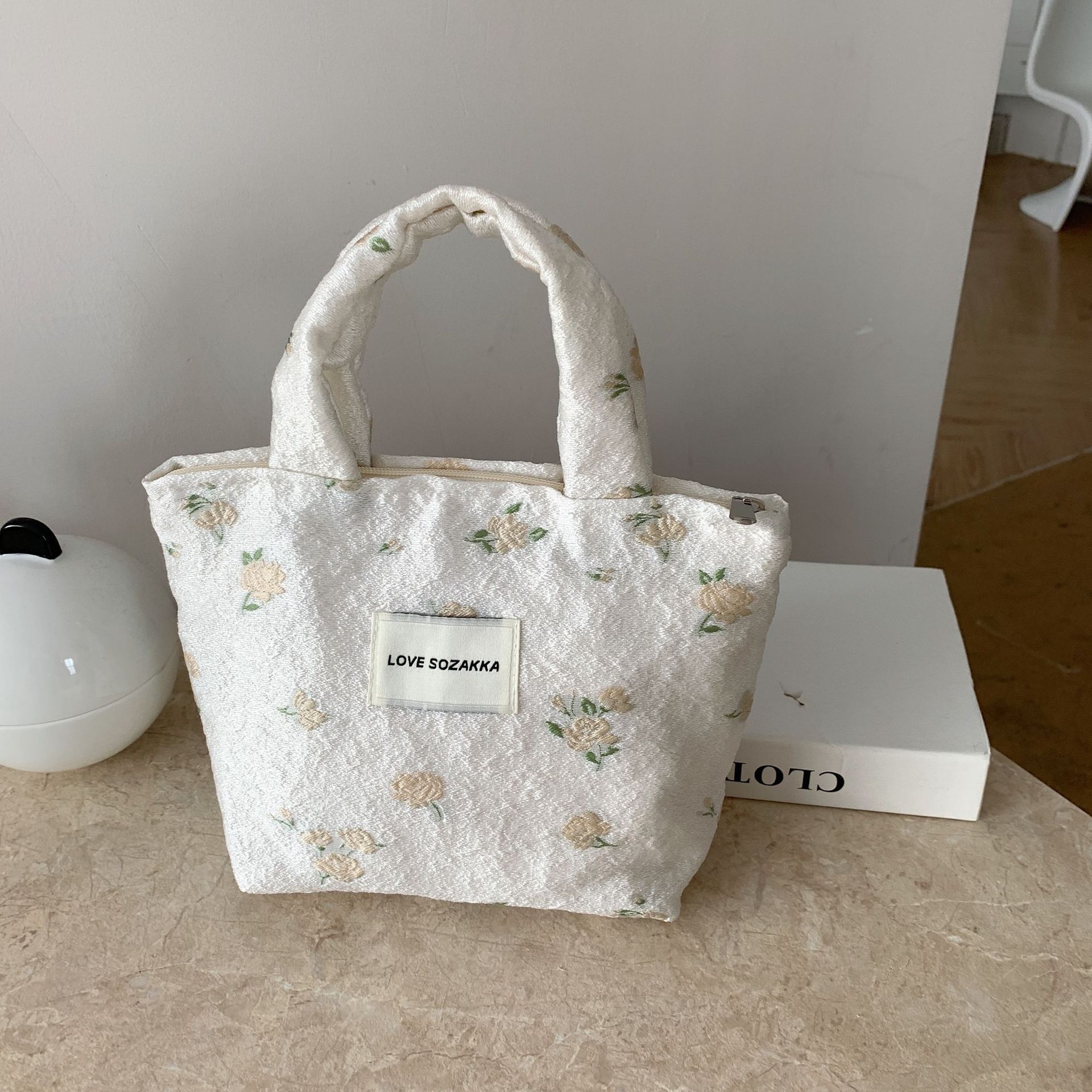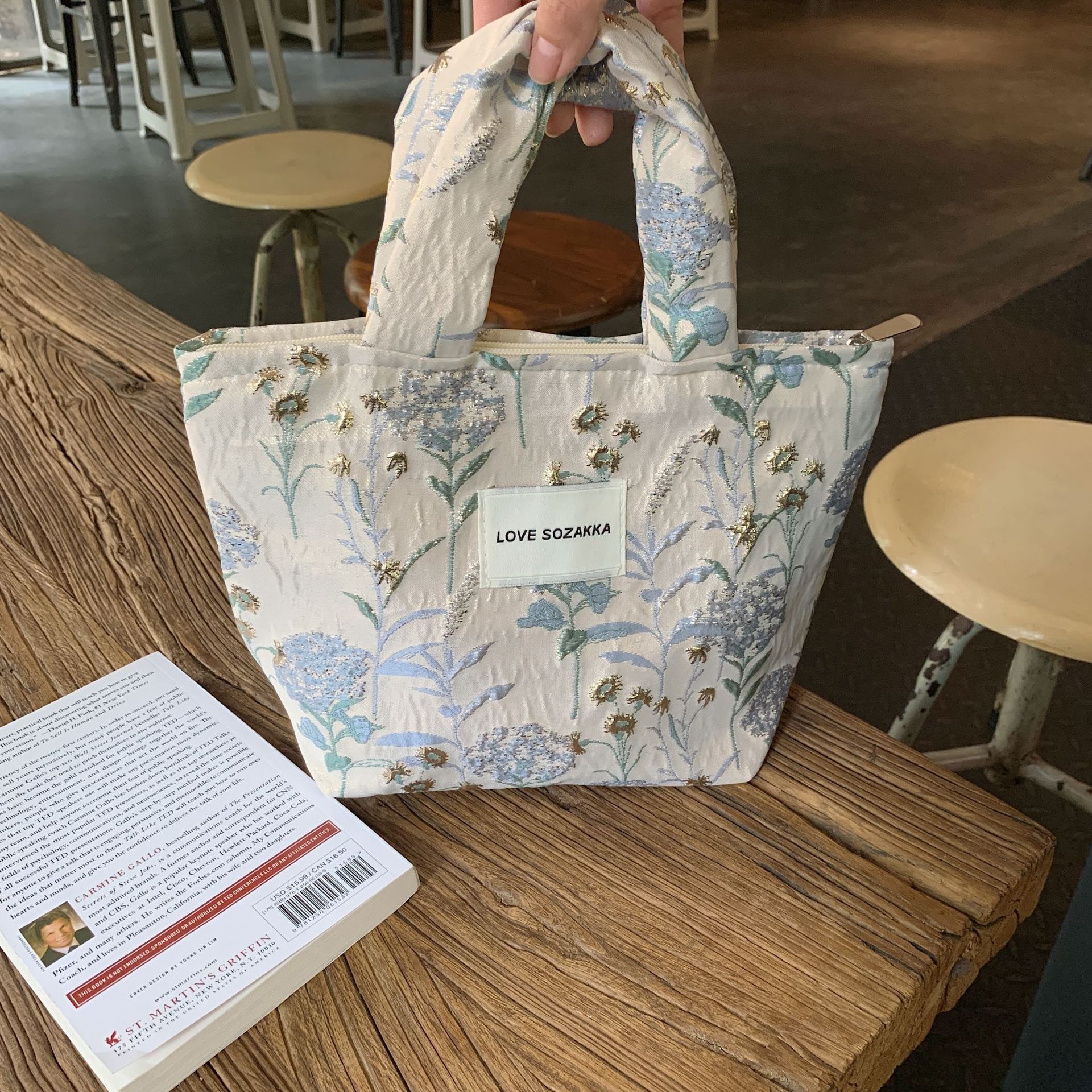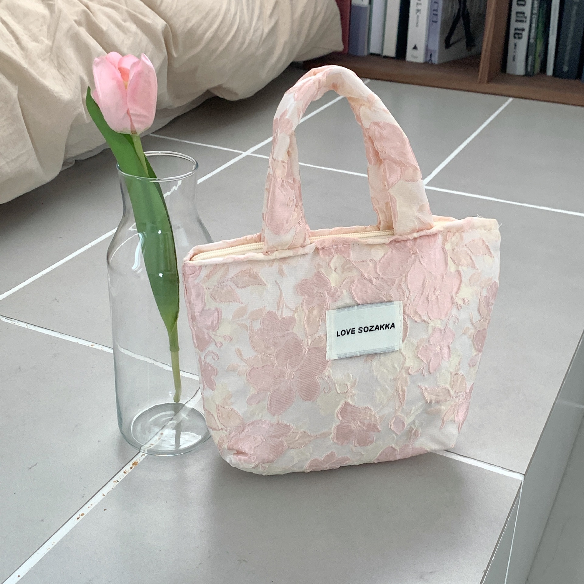 2823 프랑스 양각 꽃 휴대용 도시락 가방 여성용 간단한 휴대용 핸드백 캐주얼 워킹 핸드백
