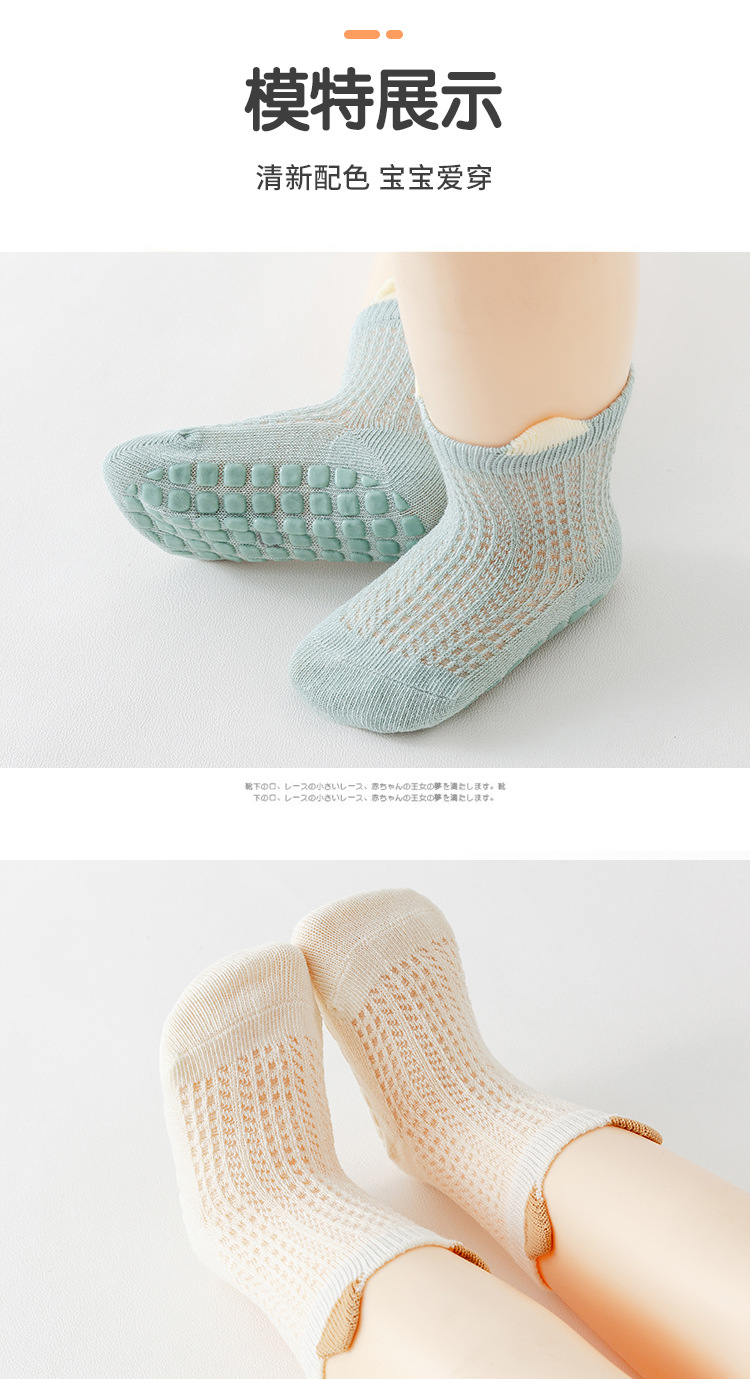 아기 미끄럼 방지 양말 여름 메쉬 아기 유아 양말 봄과 가을 얇은 어린이 짧은 보트 양말 실내 바닥 양말