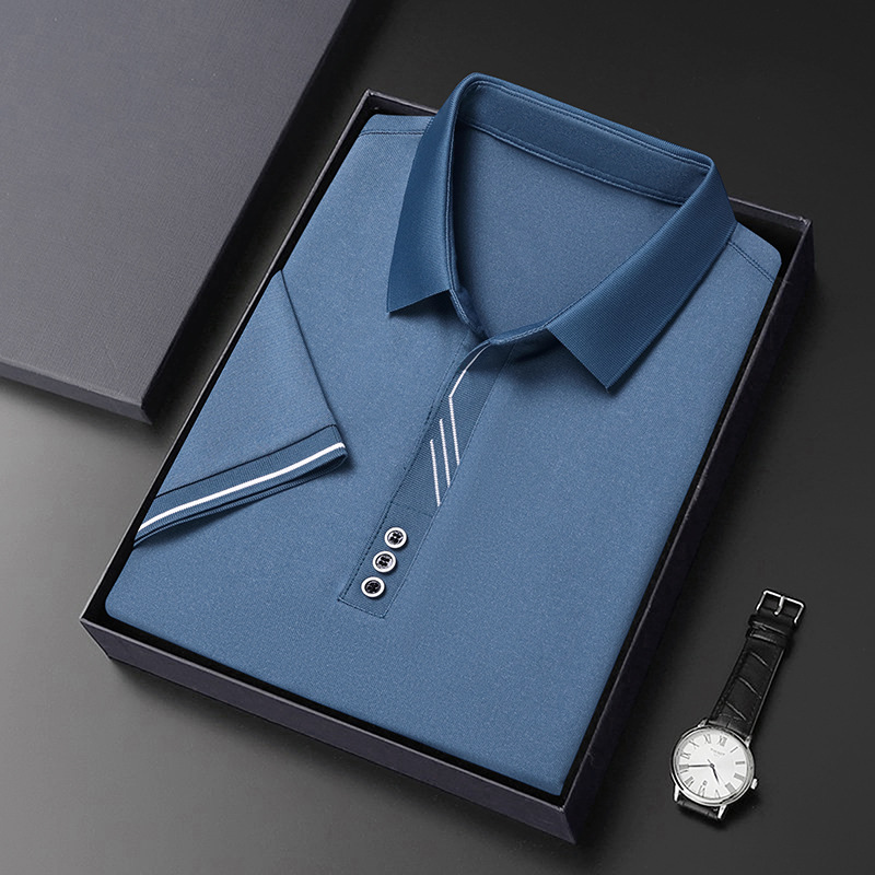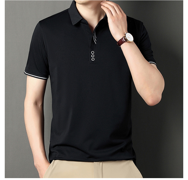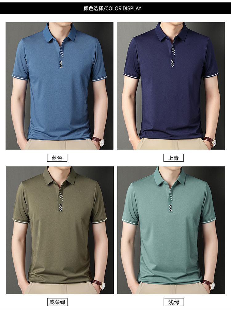 여름 새로운 속건 남성용 반팔 폴로 셔츠 남성 비즈니스 캐주얼 단색 옷깃 반팔 셔츠 머리카락 세대