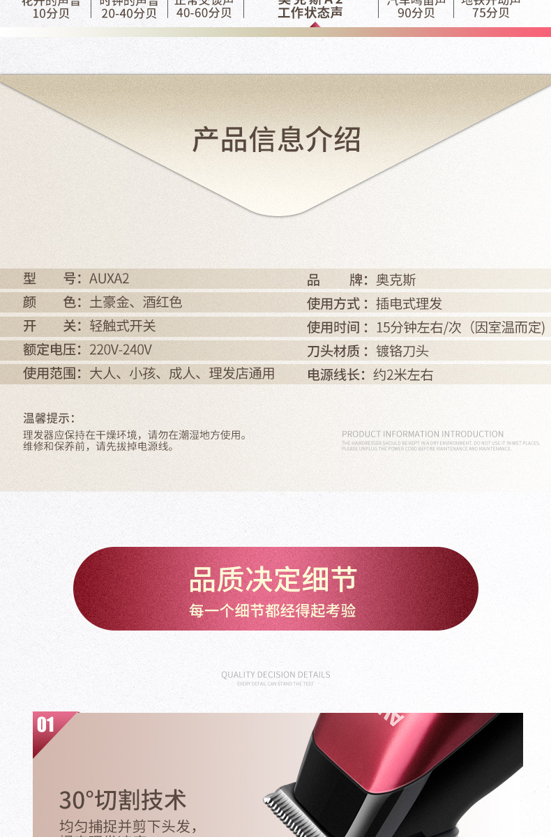 케이블 플러그 인 푸셔가있는 오크 헤어 클리퍼 전기 클리퍼 가정용 면도기 미용실 이발소 남성용스토어 가기