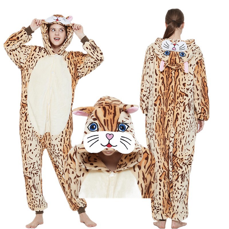 가을과 겨울 만화 원피스 잠옷 동물 성인 새로운 레오파드 무늬 고양이 분말 암소 검은 악마 가정 옷스토어 가기