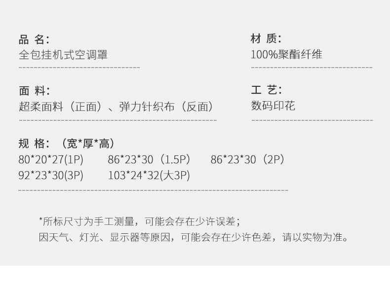 모든 항목을 포함하는 에어컨 커버 먼지 커버 교수형 Midea Gree 패브릭 교수형 범용 에어컨 커버 2025 새 모델