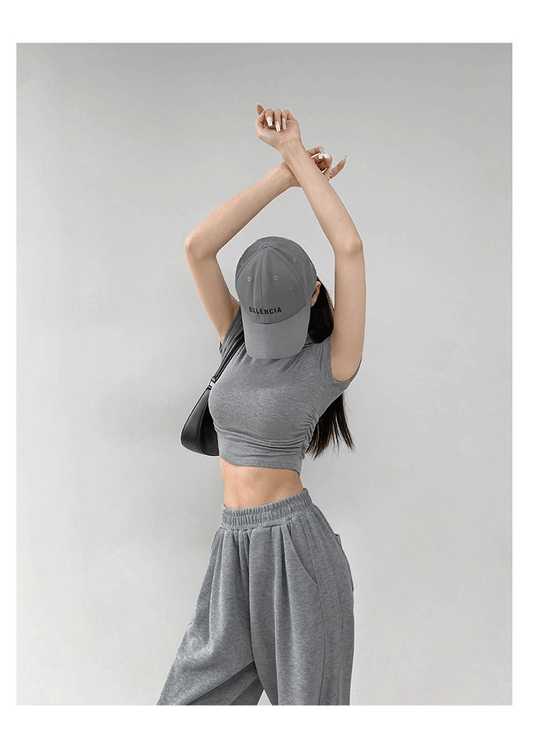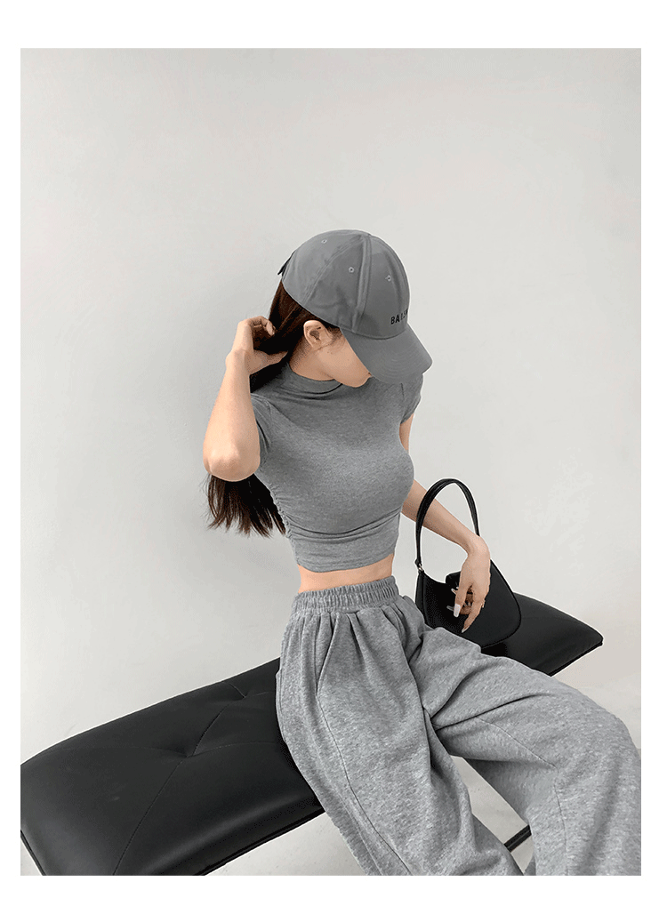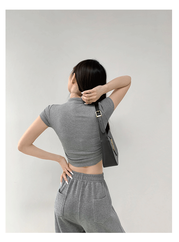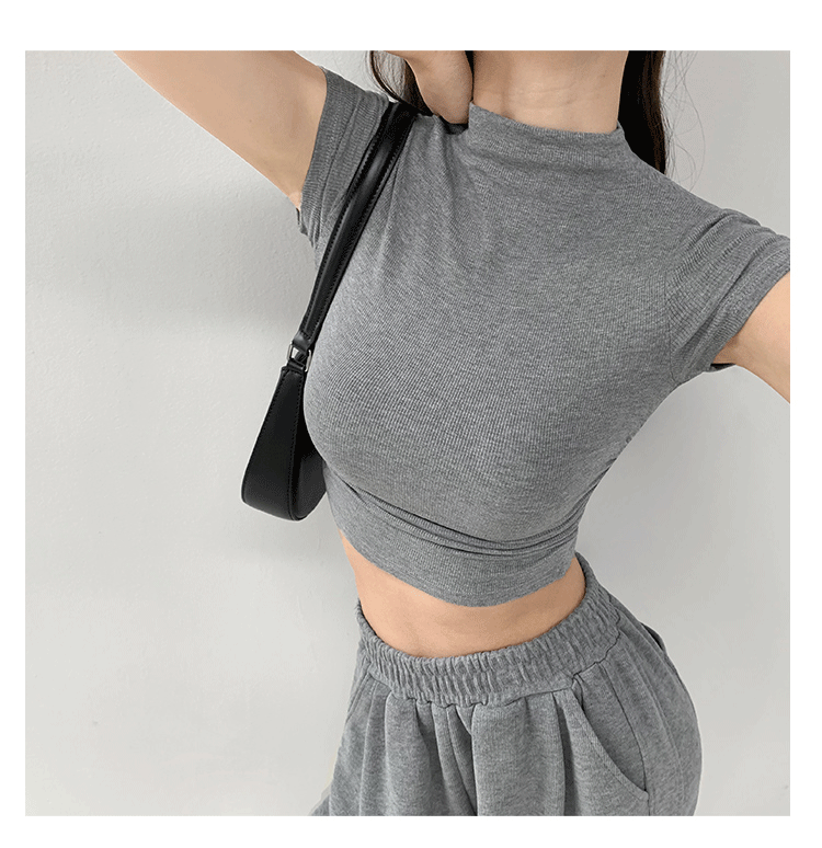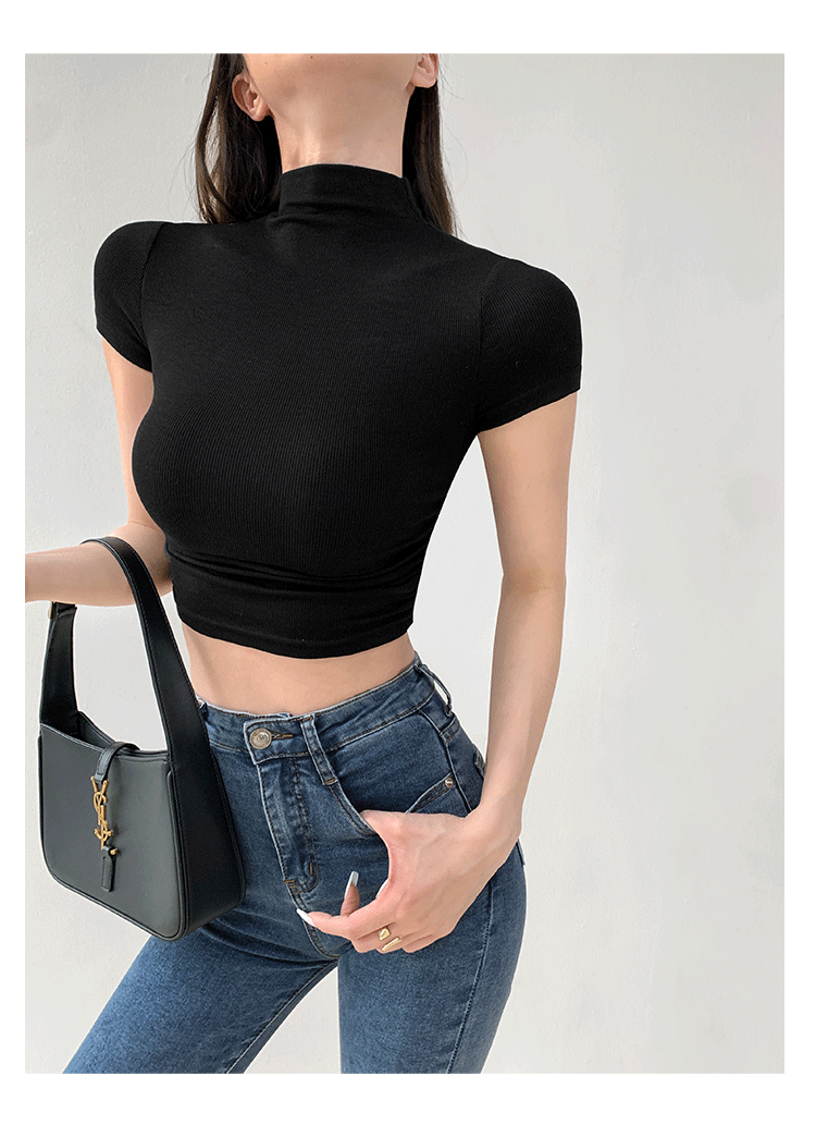 여름 핫걸 스포츠 탑 요가 반팔 하프 터틀넥 플리츠 티셔츠 순수한 매력 피트니스 의류 일상 운동 캐주얼