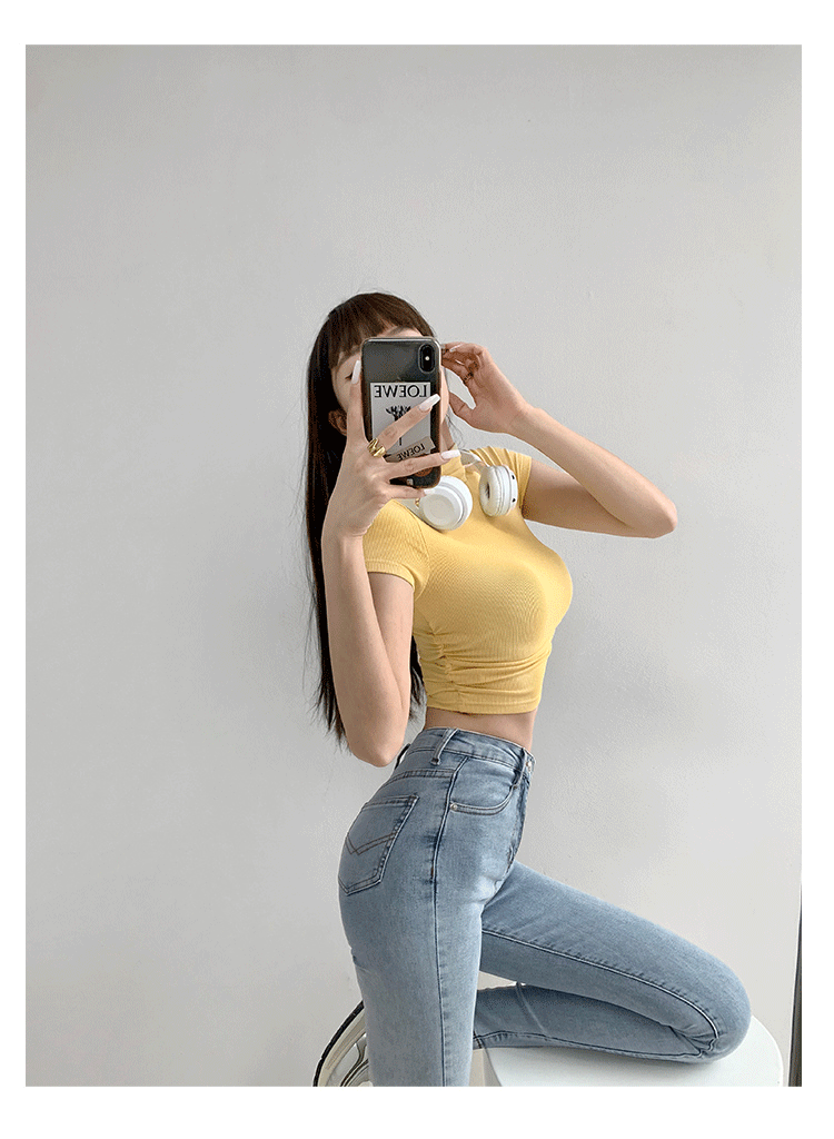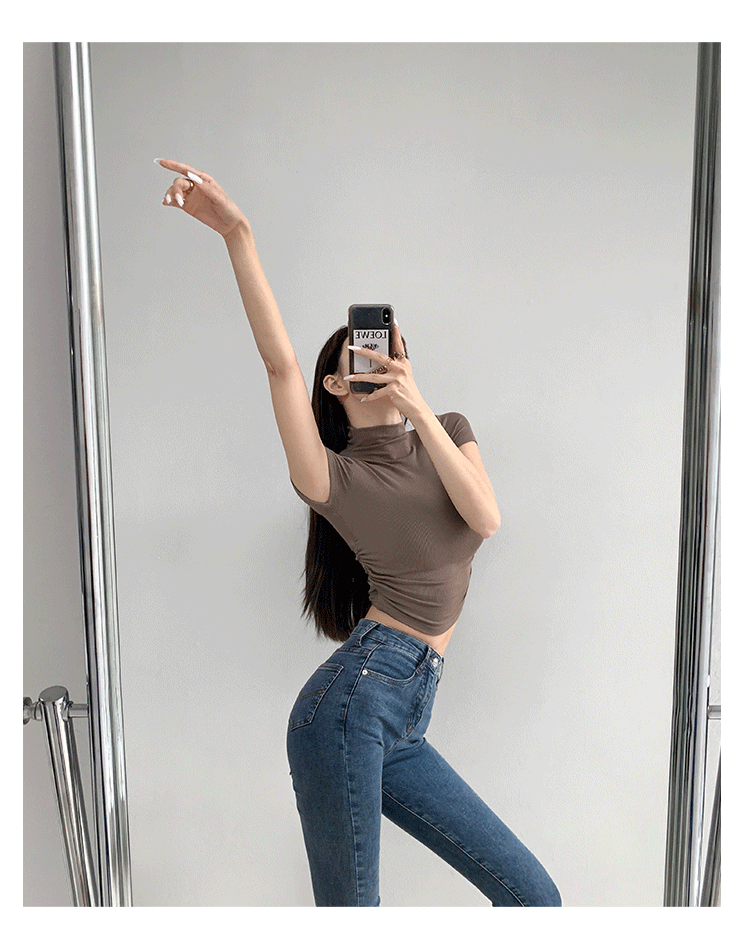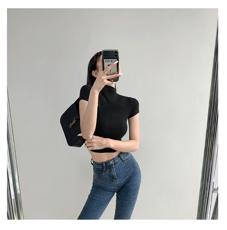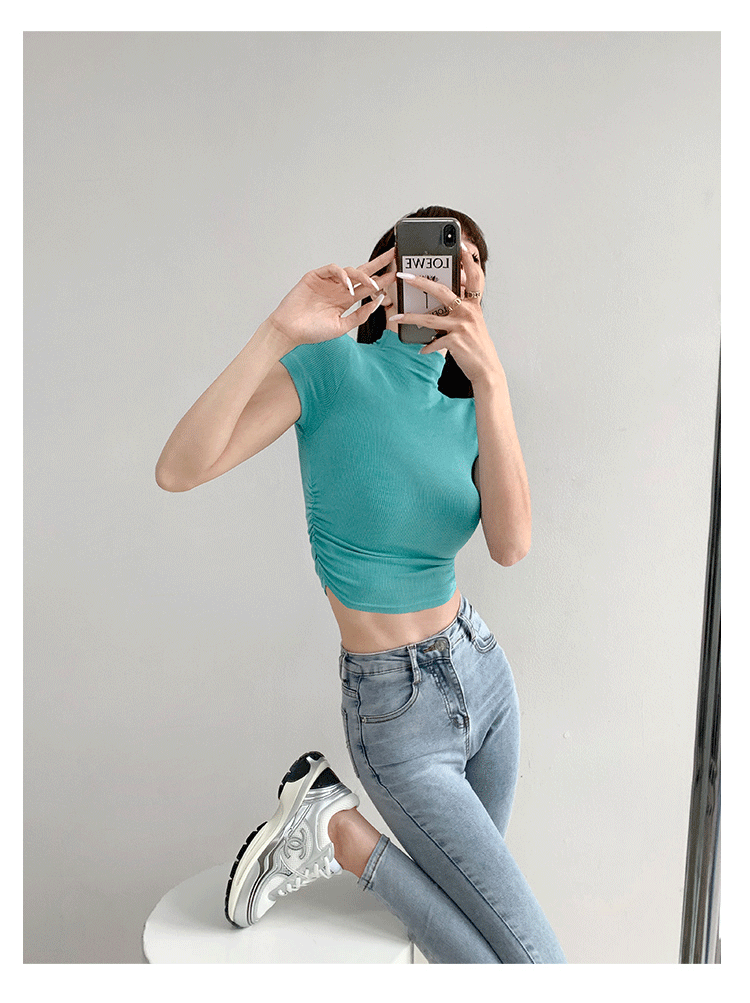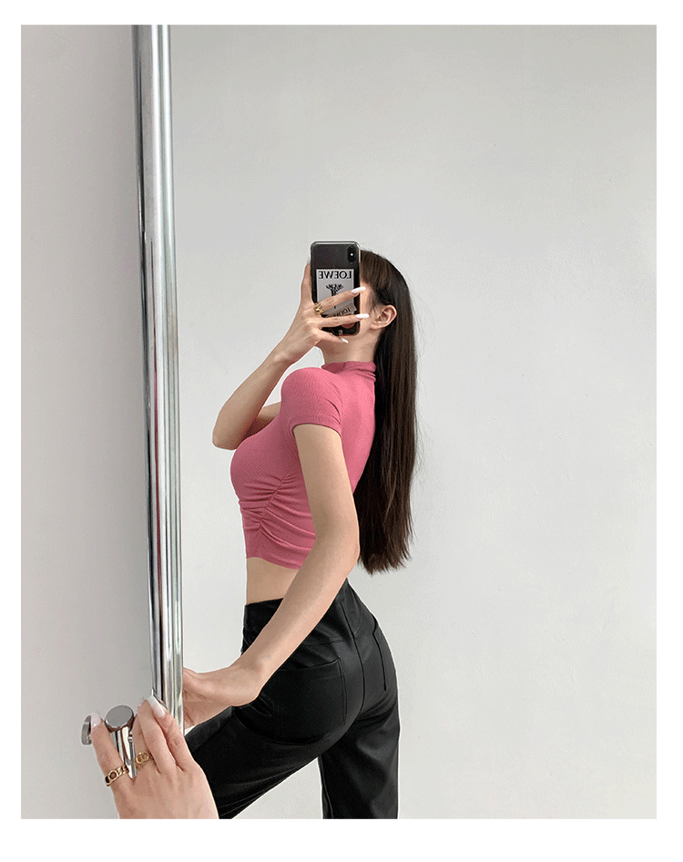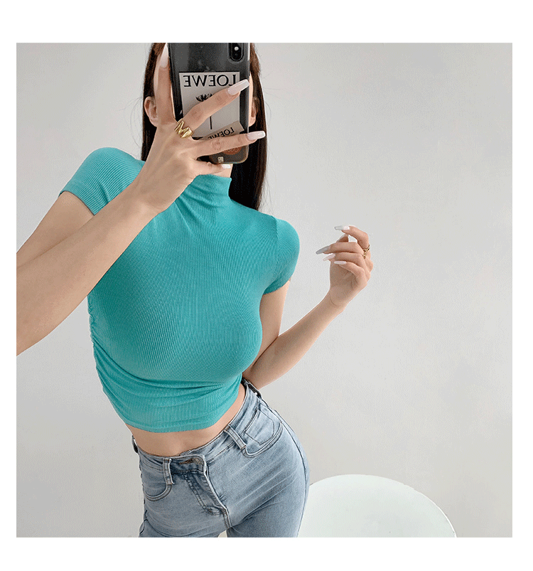 여름 핫걸 스포츠 탑 요가 반팔 하프 터틀넥 플리츠 티셔츠 순수한 매력 피트니스 의류 일상 운동 캐주얼스토어 가기