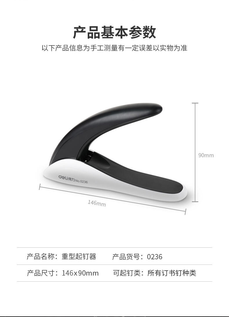 델리 0236 중형 네일 풀러 북 기계 스테이플러 대형 사무실 제본 용품