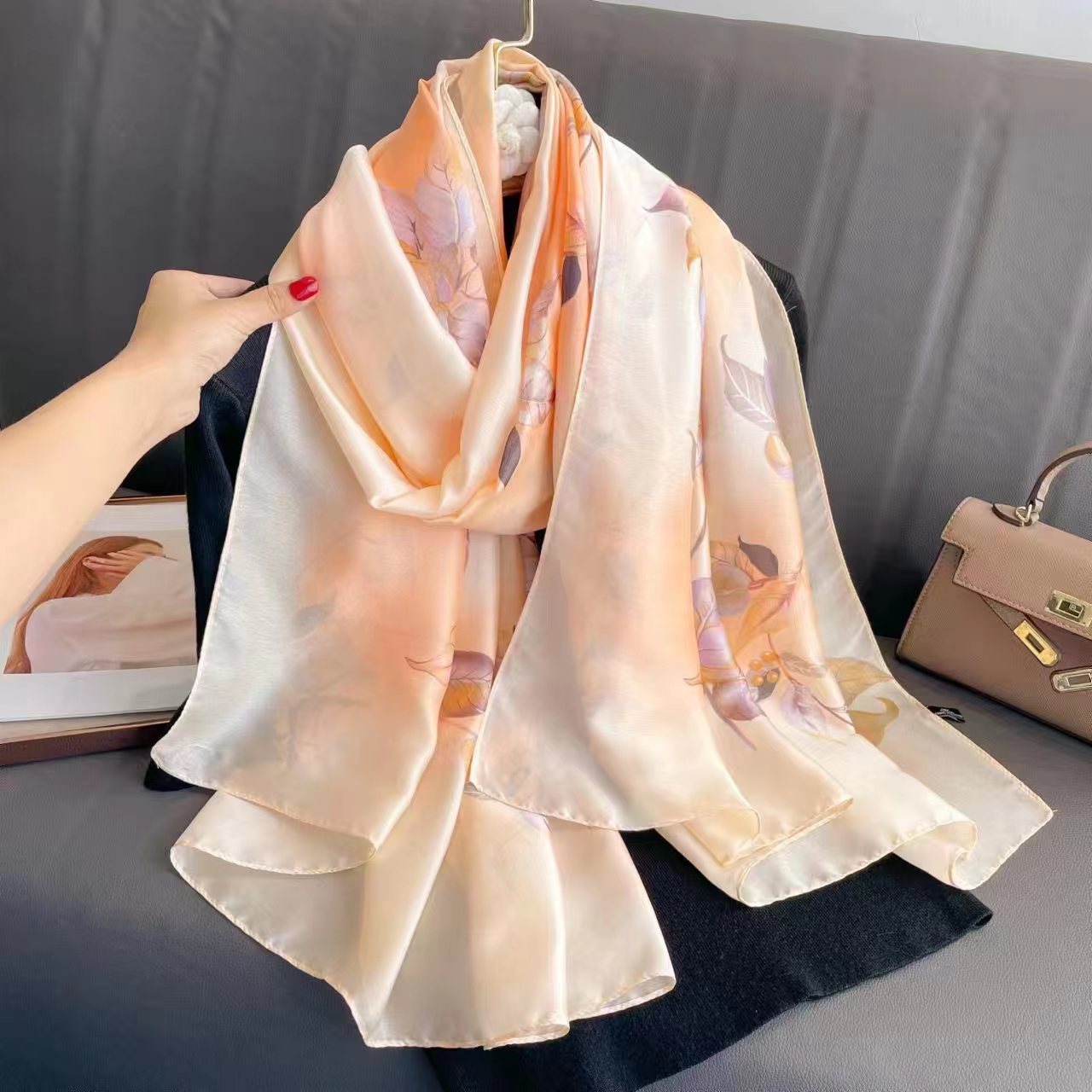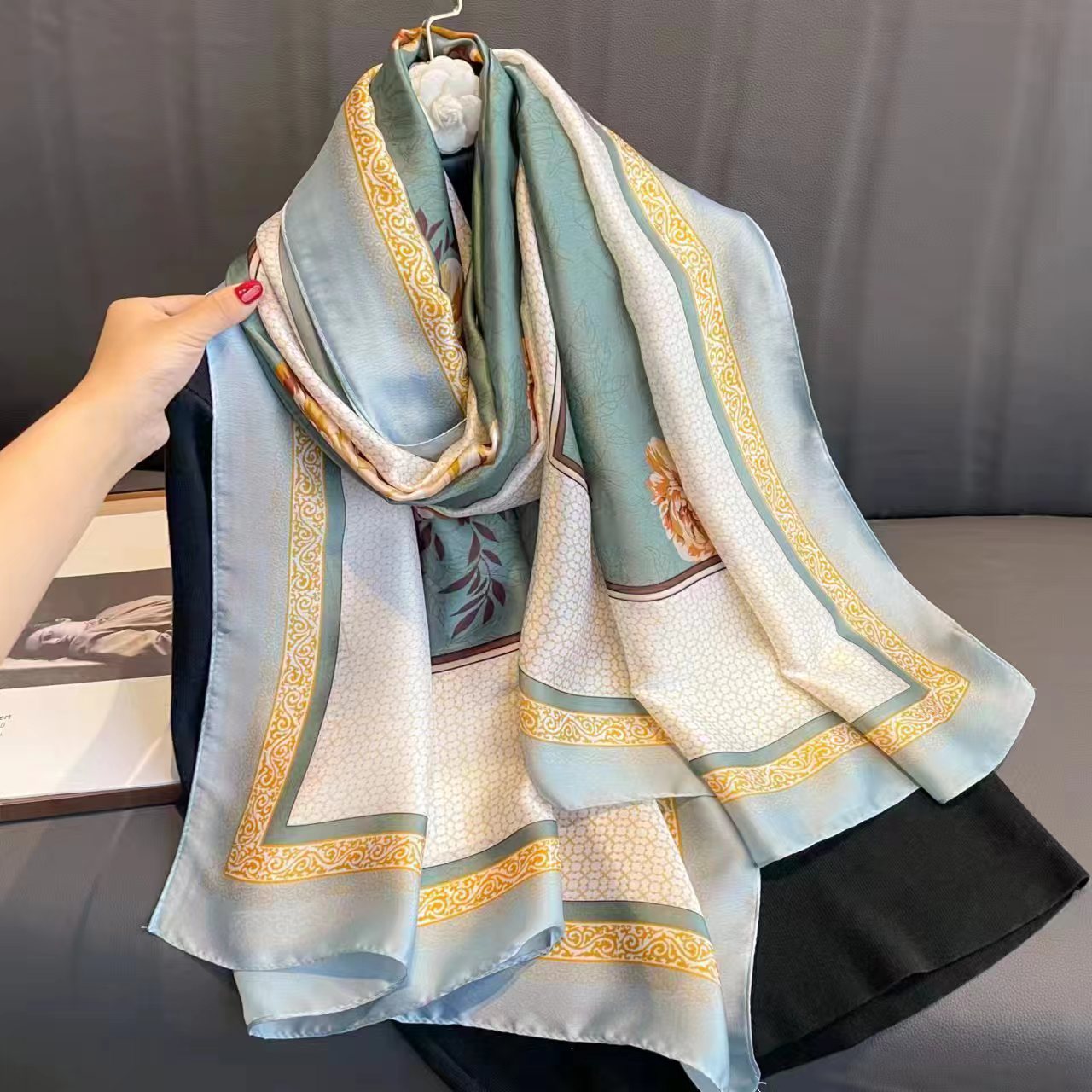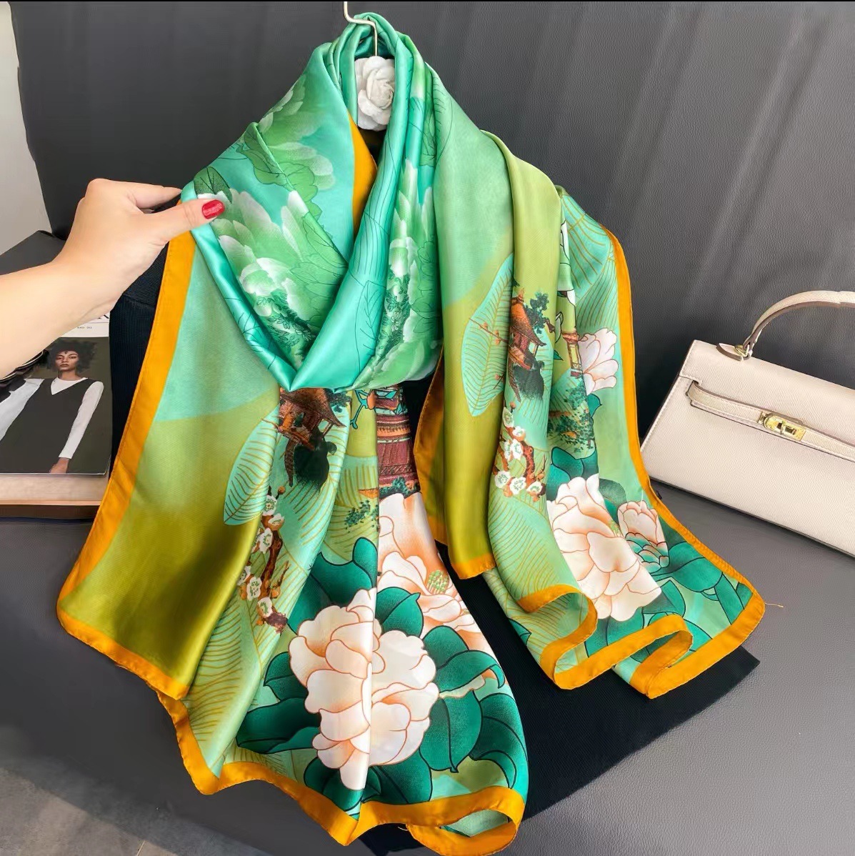 2023 스카프 여성 도매 봄과 가을 새로운 실크 새로운 스카프 여름 모조 실크 긴 스카프 여행 자외선 차단제 모래스토어 가기