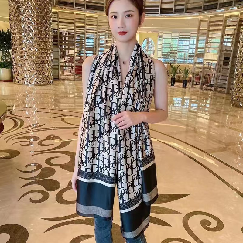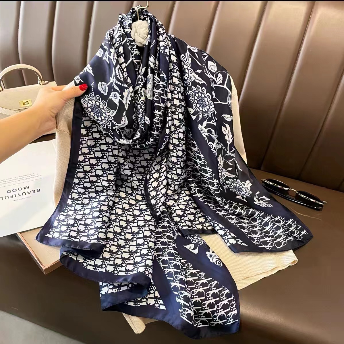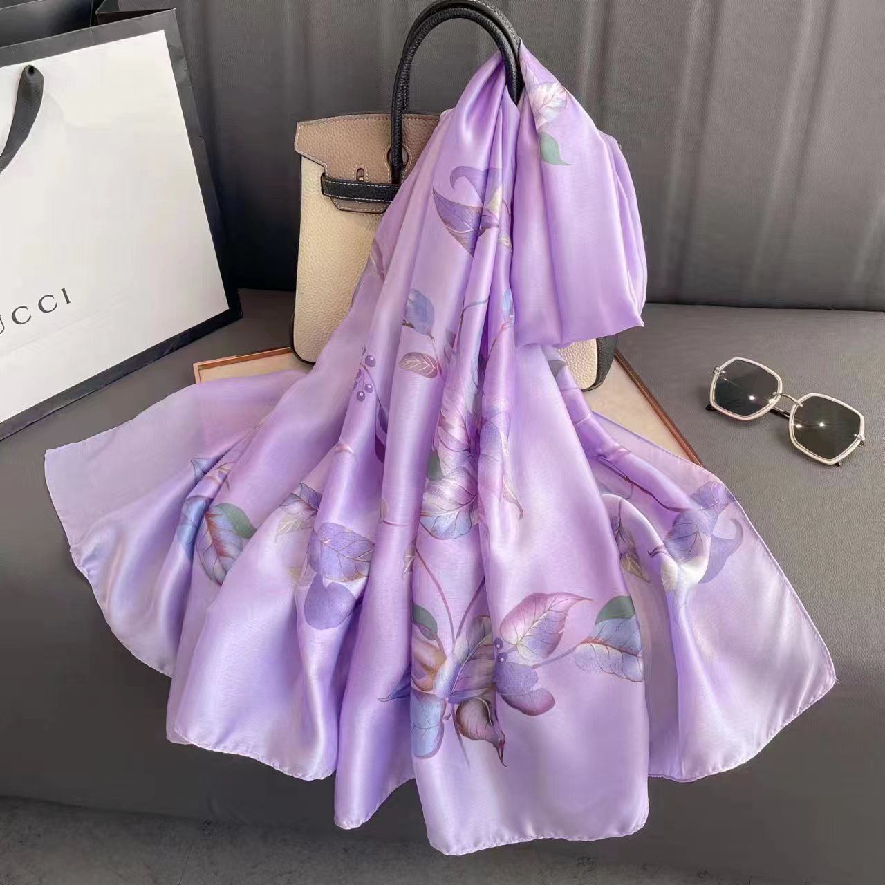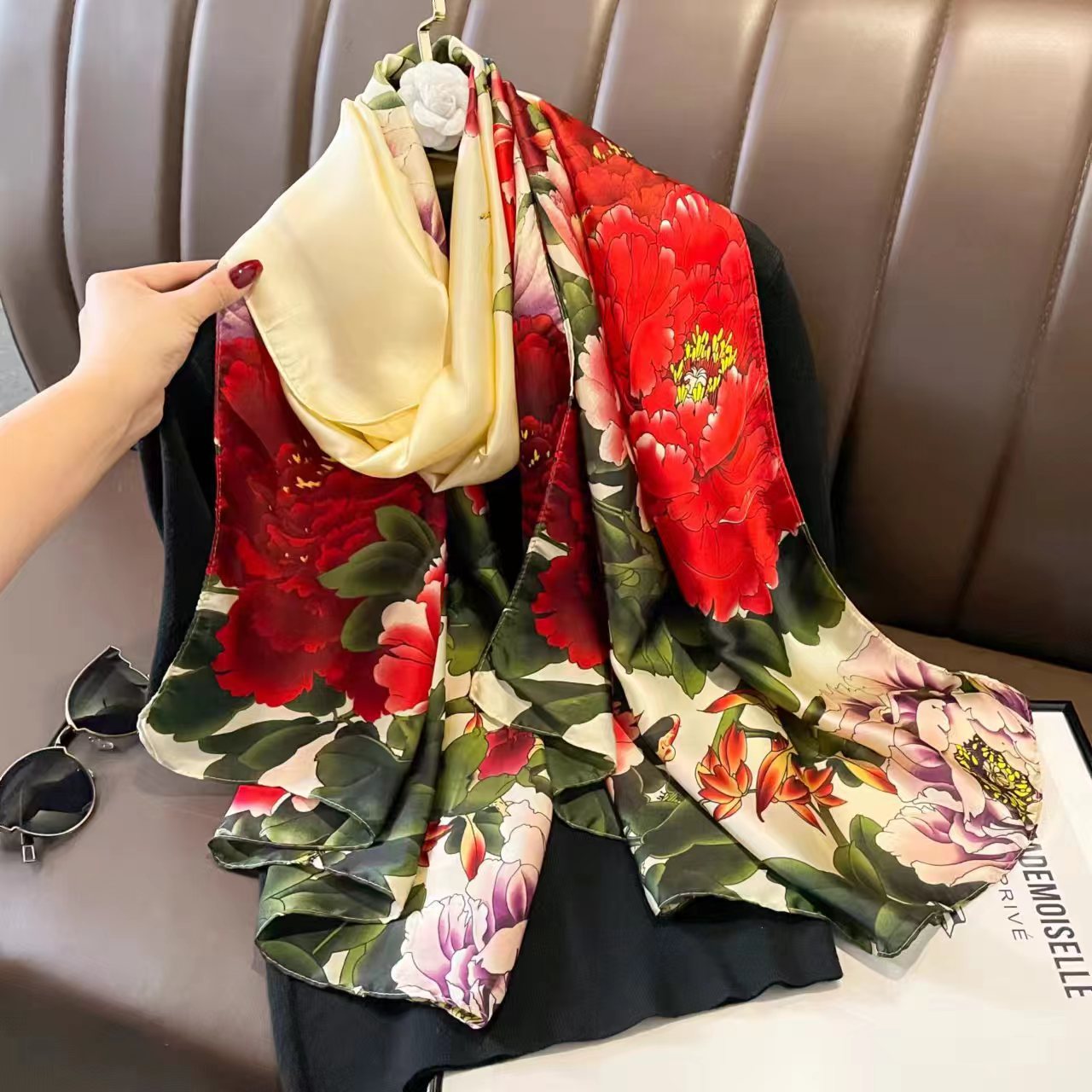 2023 스카프 여성 도매 봄과 가을 새로운 실크 새로운 스카프 여름 모조 실크 긴 스카프 여행 자외선 차단제 모래스토어 가기