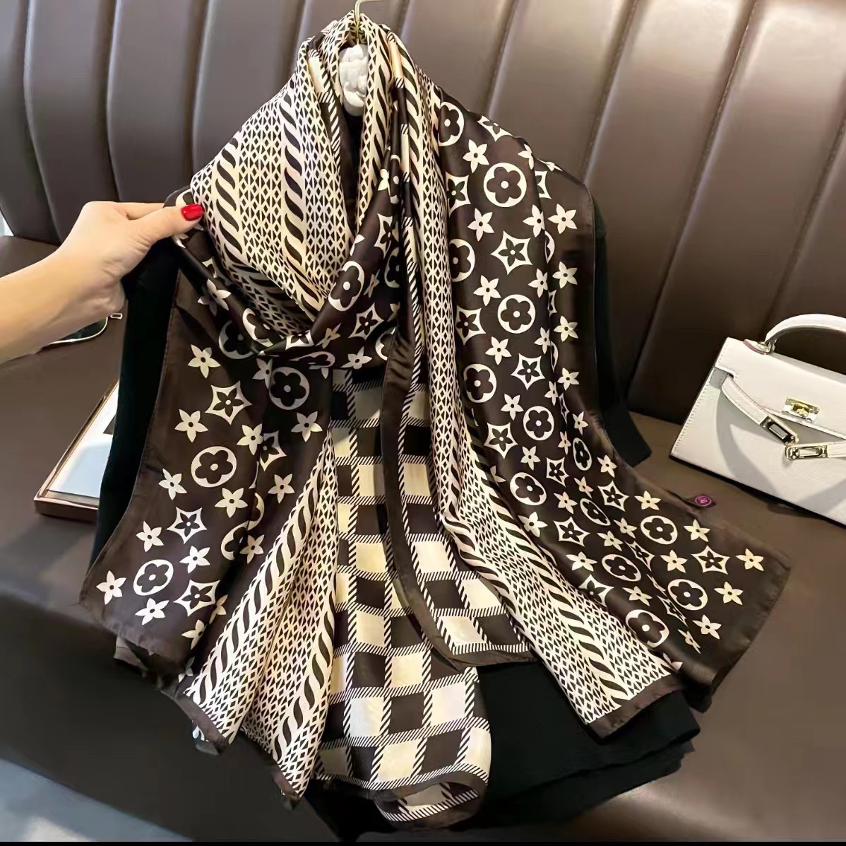 2023 스카프 여성 도매 봄과 가을 새로운 실크 새로운 스카프 여름 모조 실크 긴 스카프 여행 자외선 차단제 모래