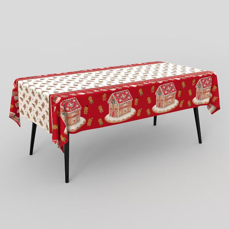 • 빨간 진저브레드 맨 코티지 크리스마스 식탁보