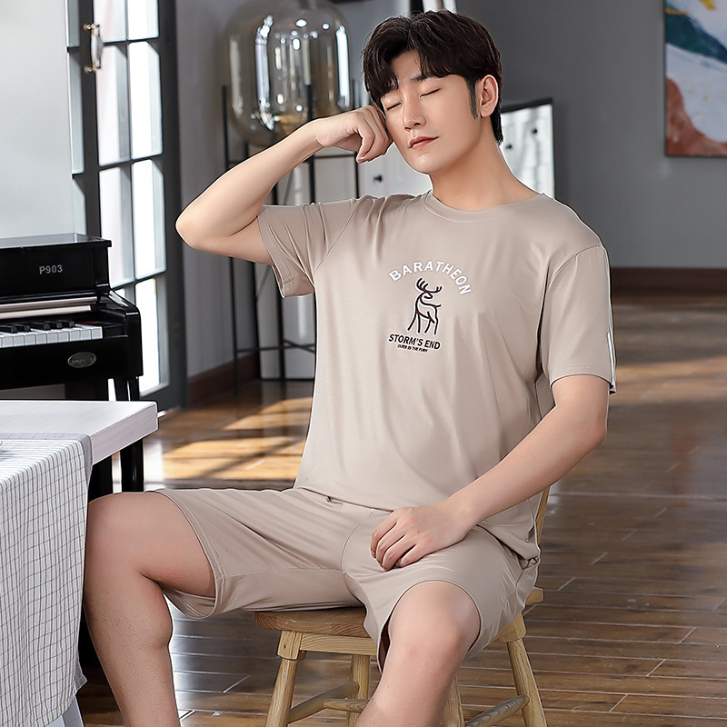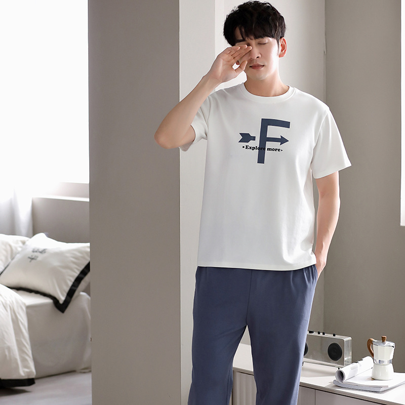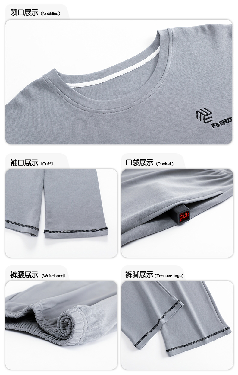 가을 빗질 꽉 면 잠옷 남자의 긴 소매 바지 풀오버 세트 느슨한 캐주얼 단색 남자의 가정 옷