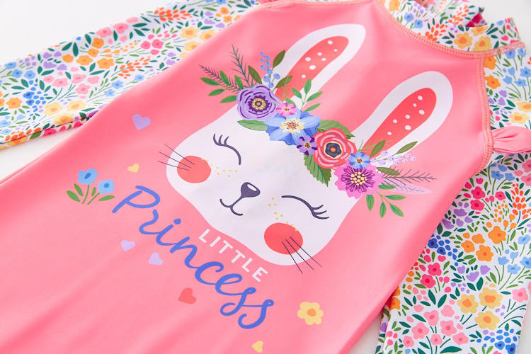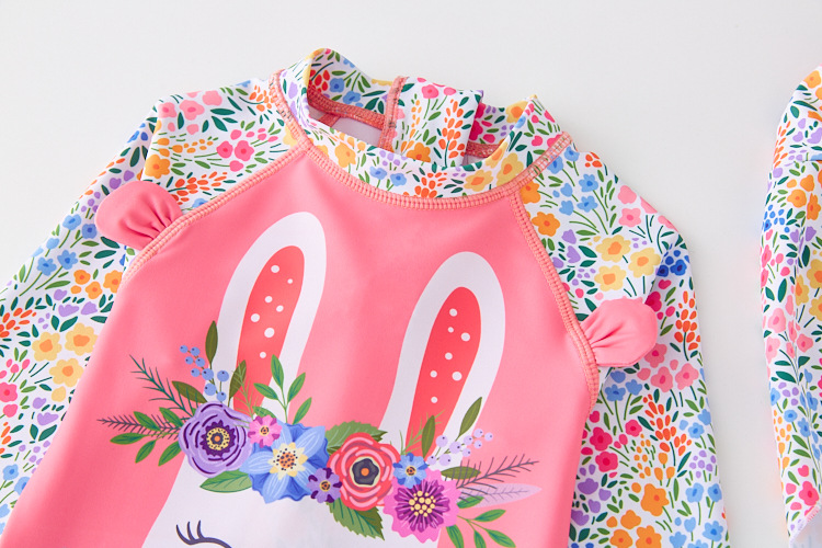 인 크로스 보더 여아 한국 귀여운 토끼 긴팔 자외선 차단제 비치 서퍼 자외선 차단제 수영복 세트 트렌디