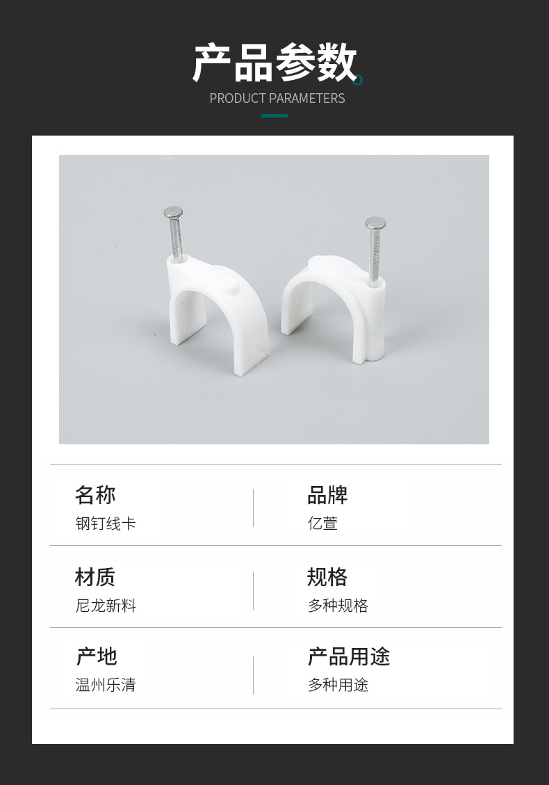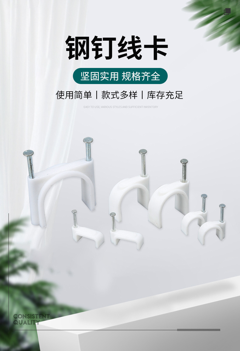 벽 파이프 라인 버클 그물 케이블 특수 사각형 플라스틱 클립 스틸 네일 케이블 고정 버클 도매