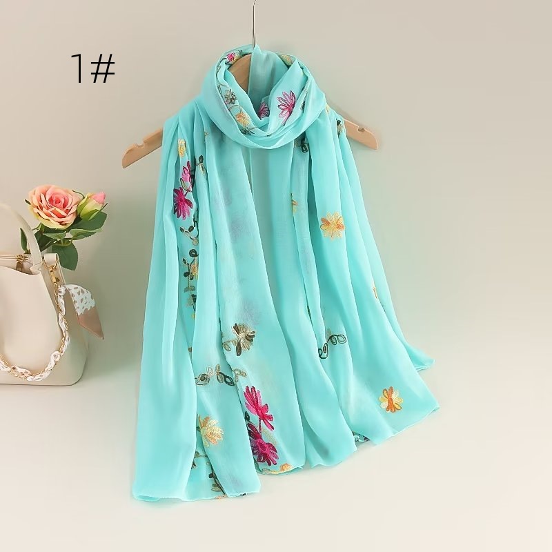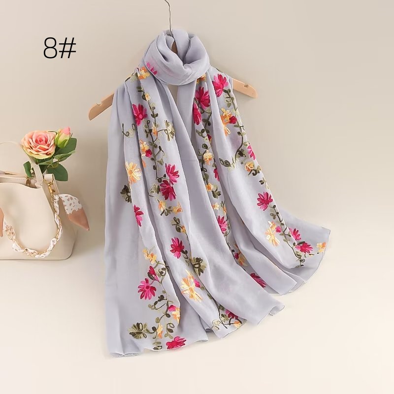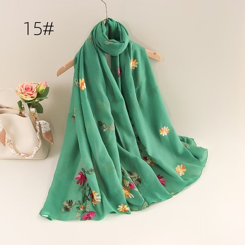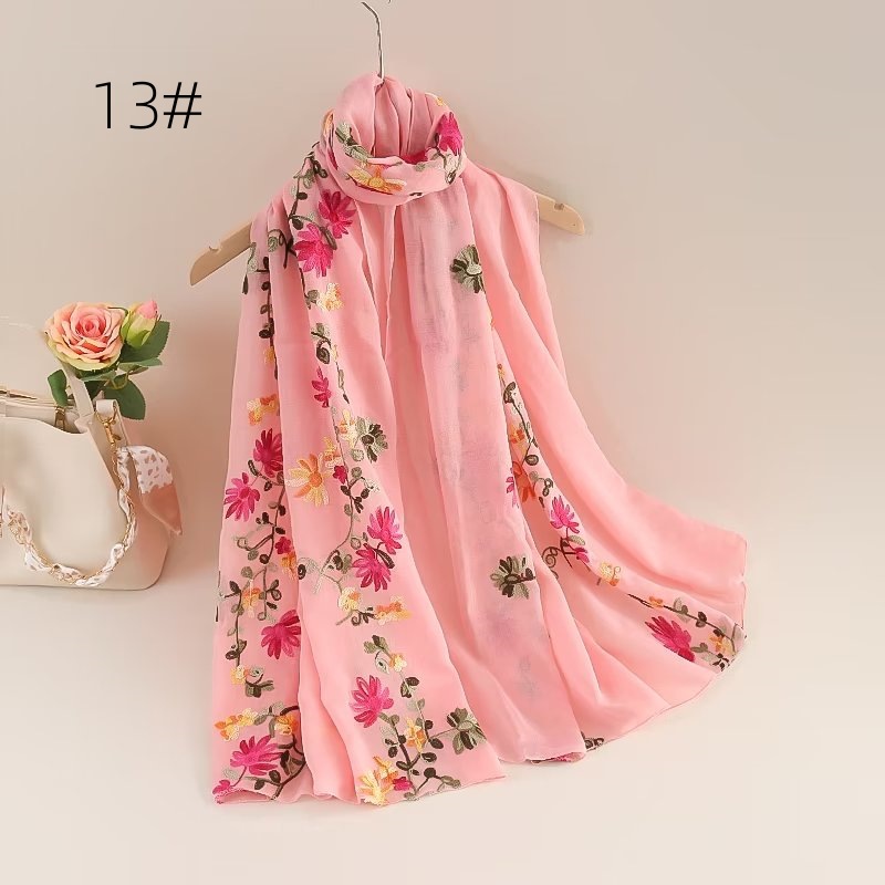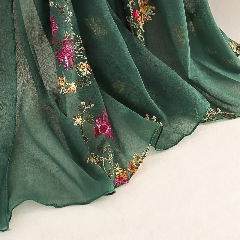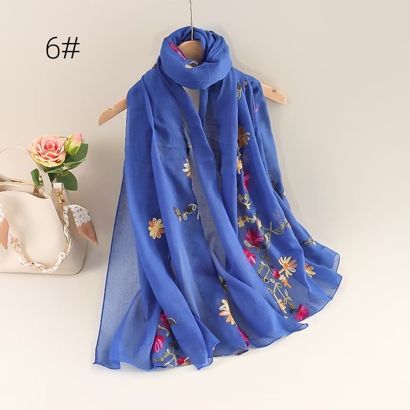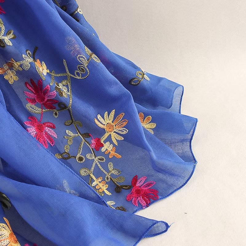 크로스 보더 경량 통기성 면 및 린넨 자수 스카프 에스닉 유행 부드러운 여성용 자외선 차단제 스카프 가능 숄스토어 가기