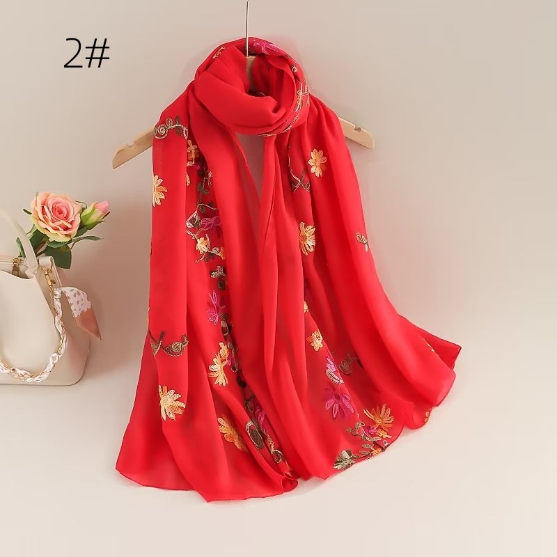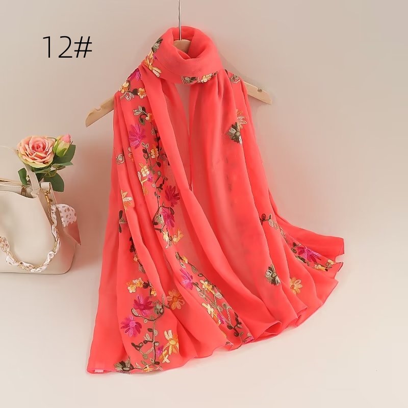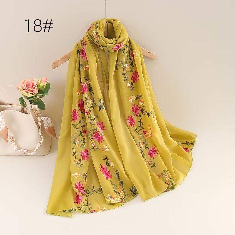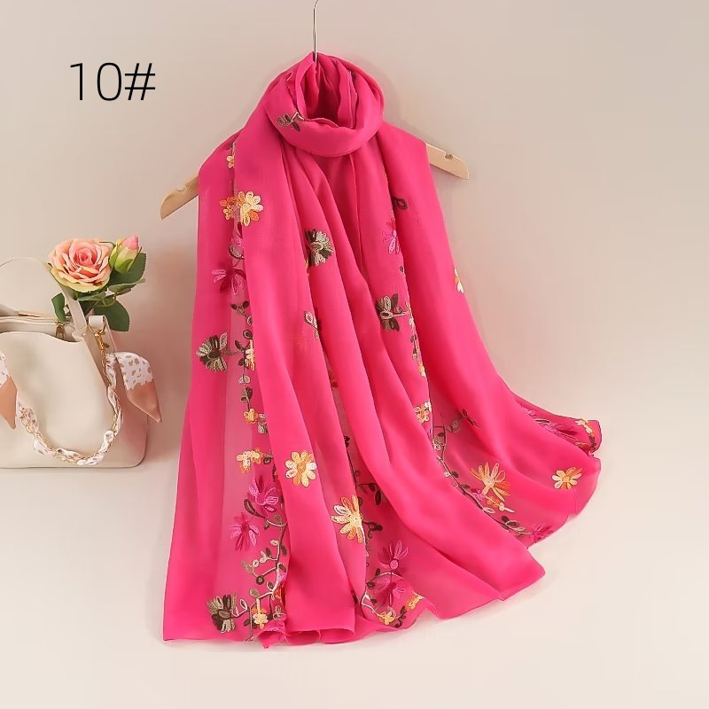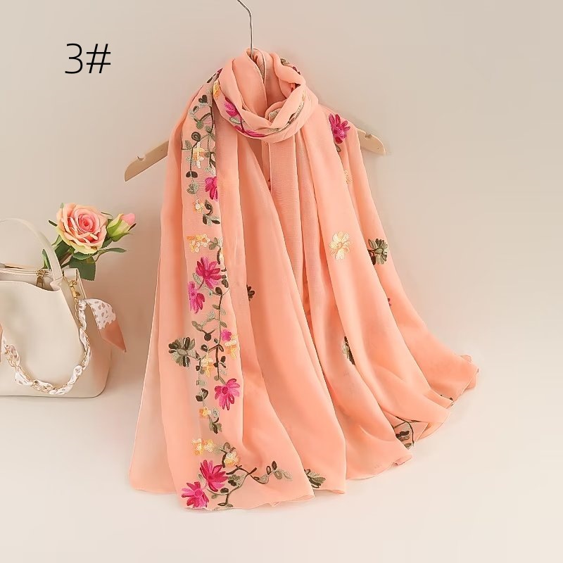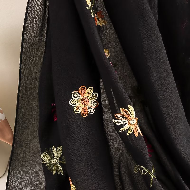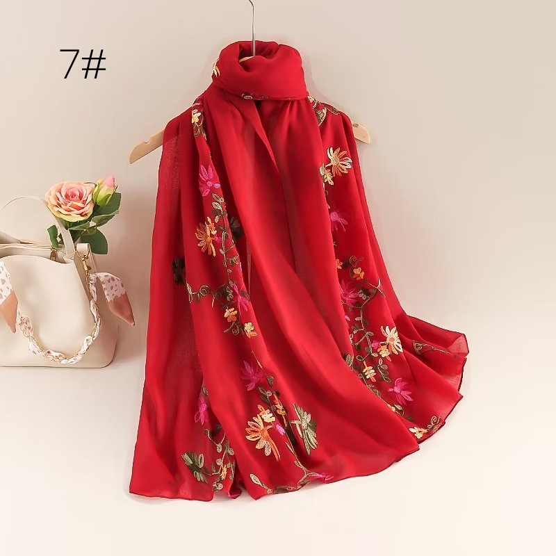 크로스 보더 경량 통기성 면 및 린넨 자수 스카프 에스닉 유행 부드러운 여성용 자외선 차단제 스카프 가능 숄스토어 가기