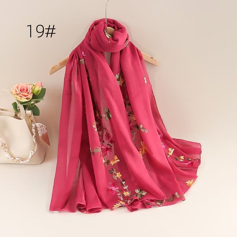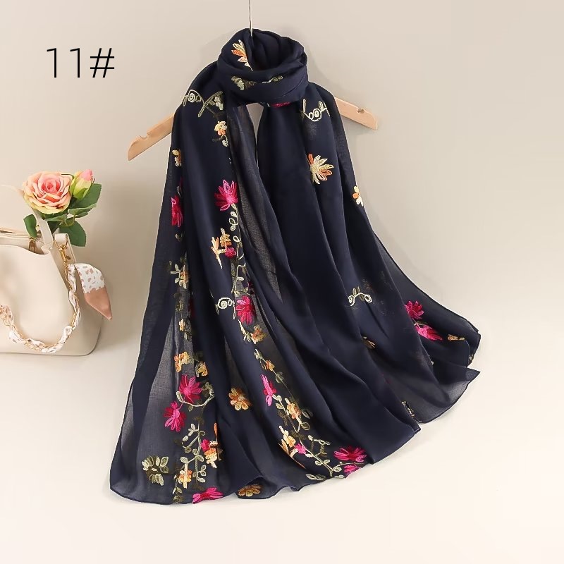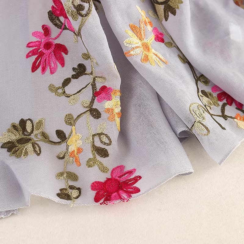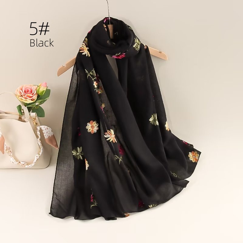 크로스 보더 경량 통기성 면 및 린넨 자수 스카프 에스닉 유행 부드러운 여성용 자외선 차단제 스카프 가능 숄