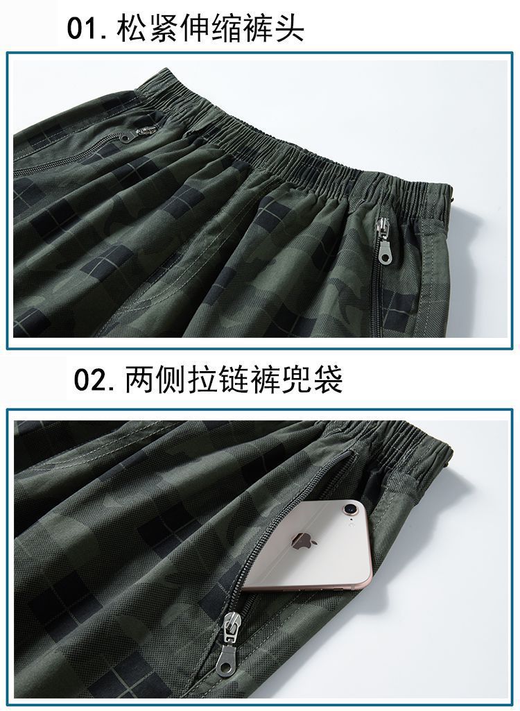 여름 남성용 카프리 바지 아빠의 순면 반바지 중년 및 노인 느슨한 캐주얼 바지 얇은 대형 바지 5 바지스토어 가기