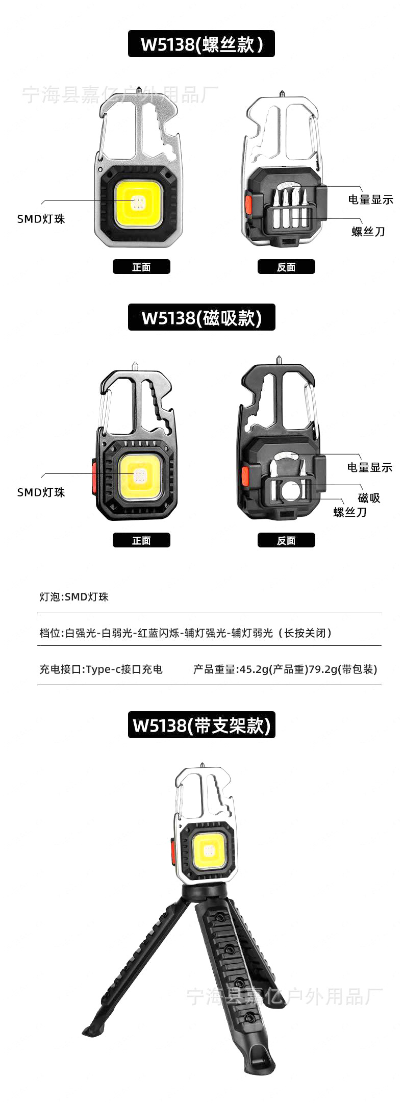 미니 키 체인 라이트 휴대용 강한 빛 휴대용 소형 손전등 다기능 led 작업등 COB 포켓 라이트