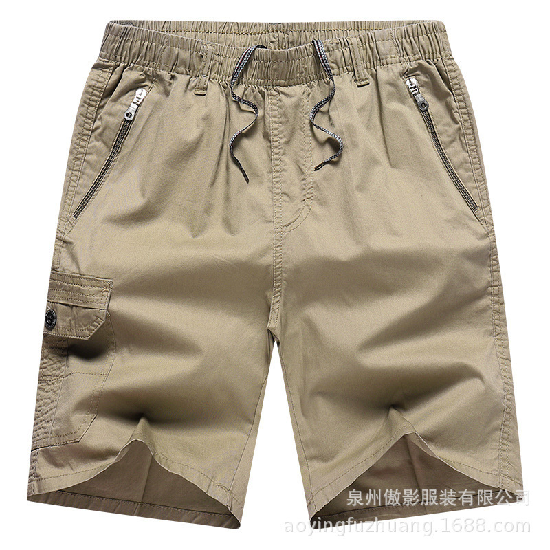 跨境新款夏季男式休闲裤大码棉质五分工装裤宽松弹力直筒裤男