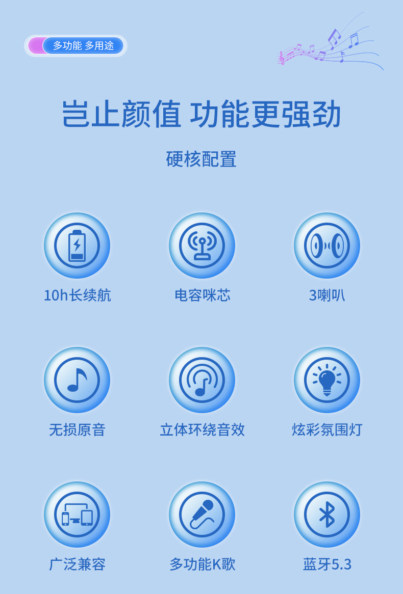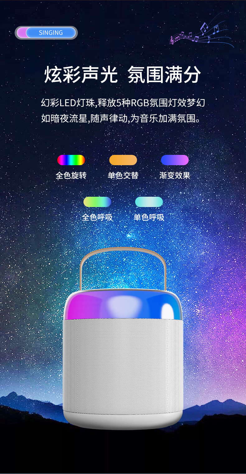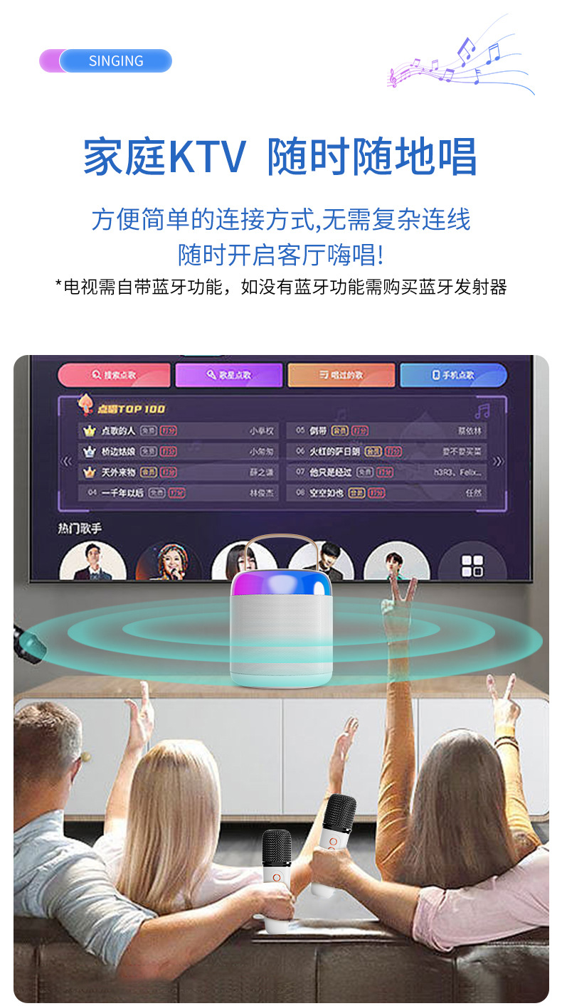 노래방 블루투스 스피커 세트 노래방 다채로운 LED 분위기 조명 오디오 올인원 무선 마이크