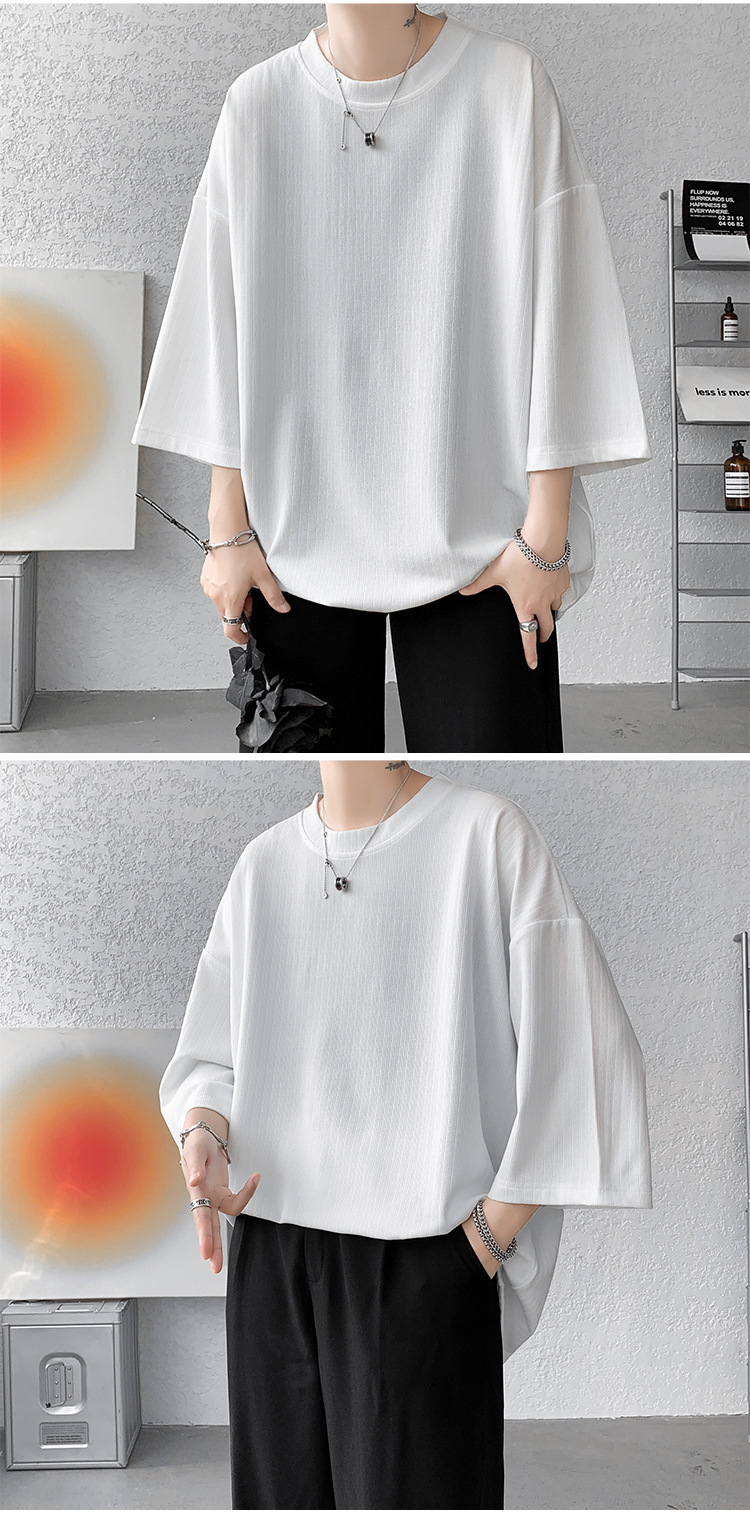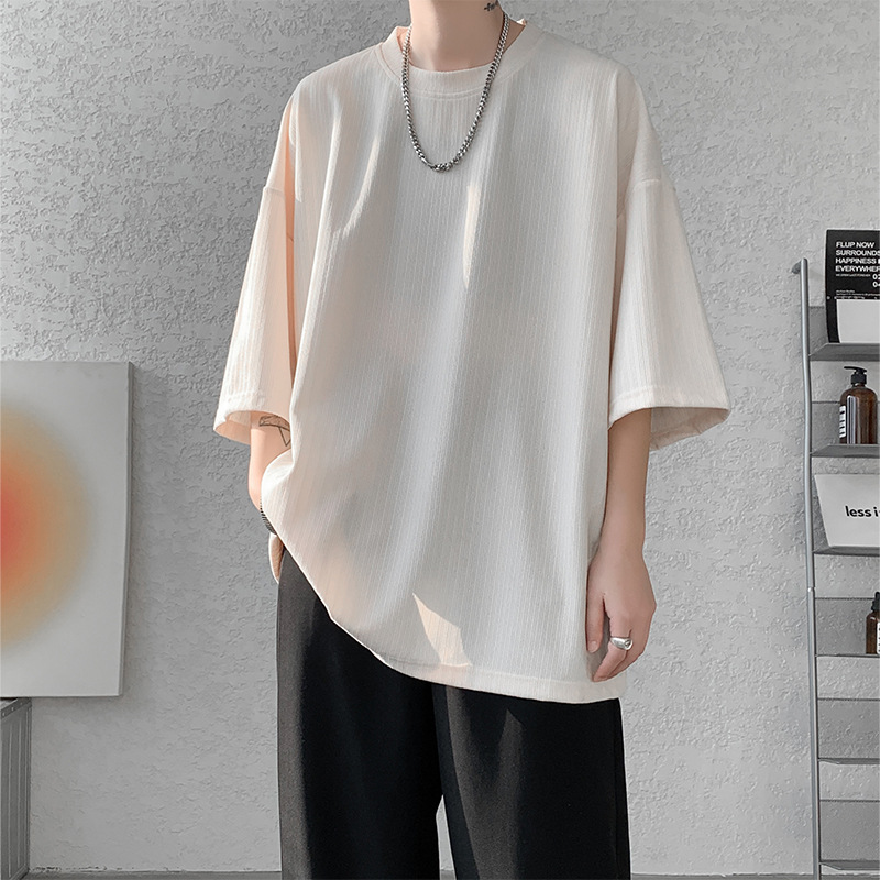 아이스 실크 반소매 티셔츠 남자의 드레이프 탑 여름 2023 새로운 패션 플러스 사이즈 단색 반 소매 티셔츠