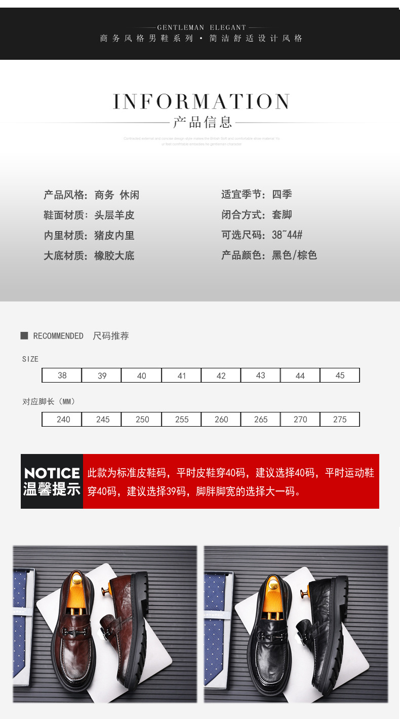注意事项:此款皮鞋码数偏大!平日里皮鞋41码数的情况下,这款建议拍40,运动鞋42的情况下,建议拍40!以此类推!!