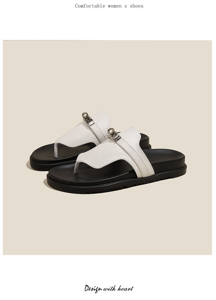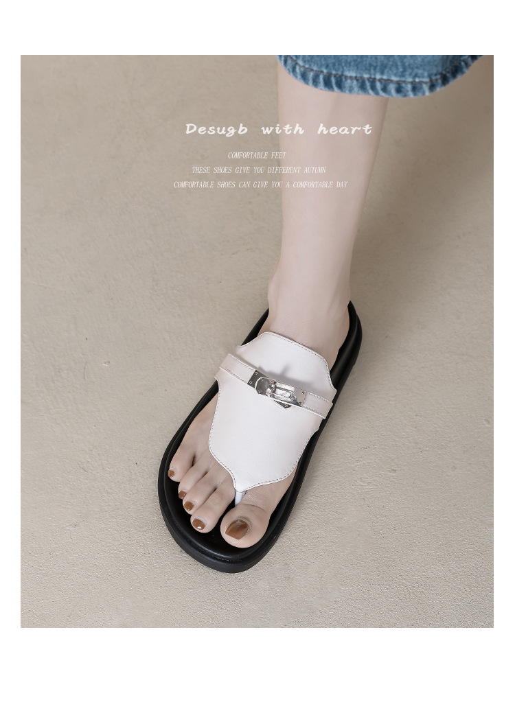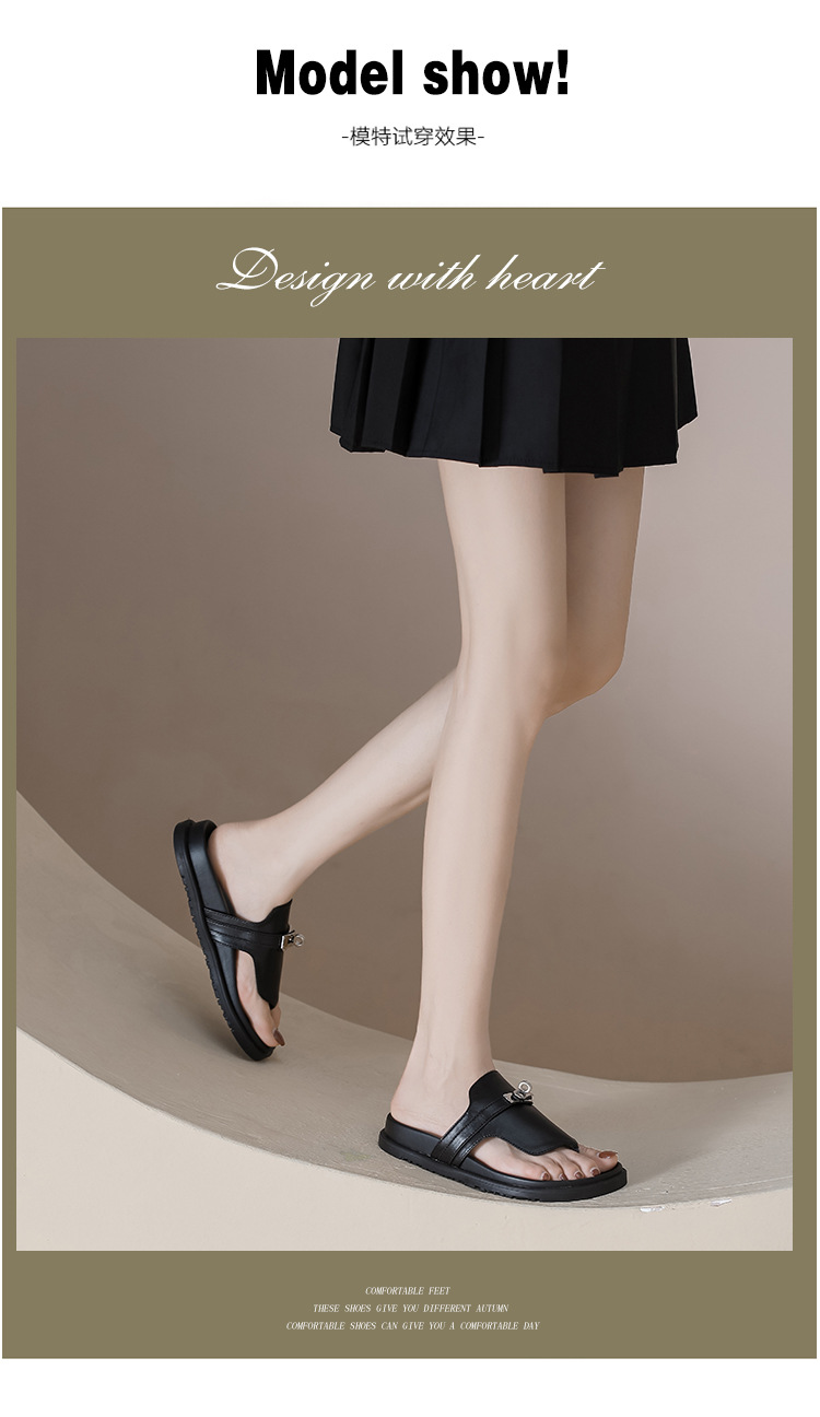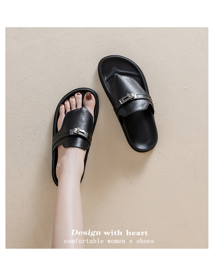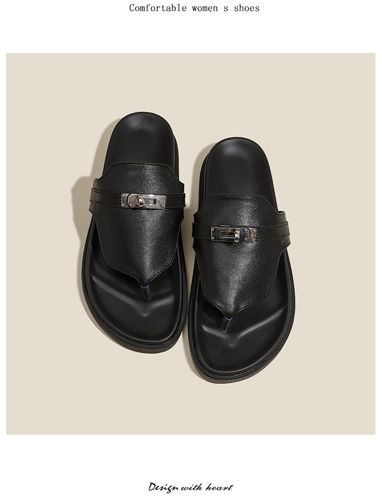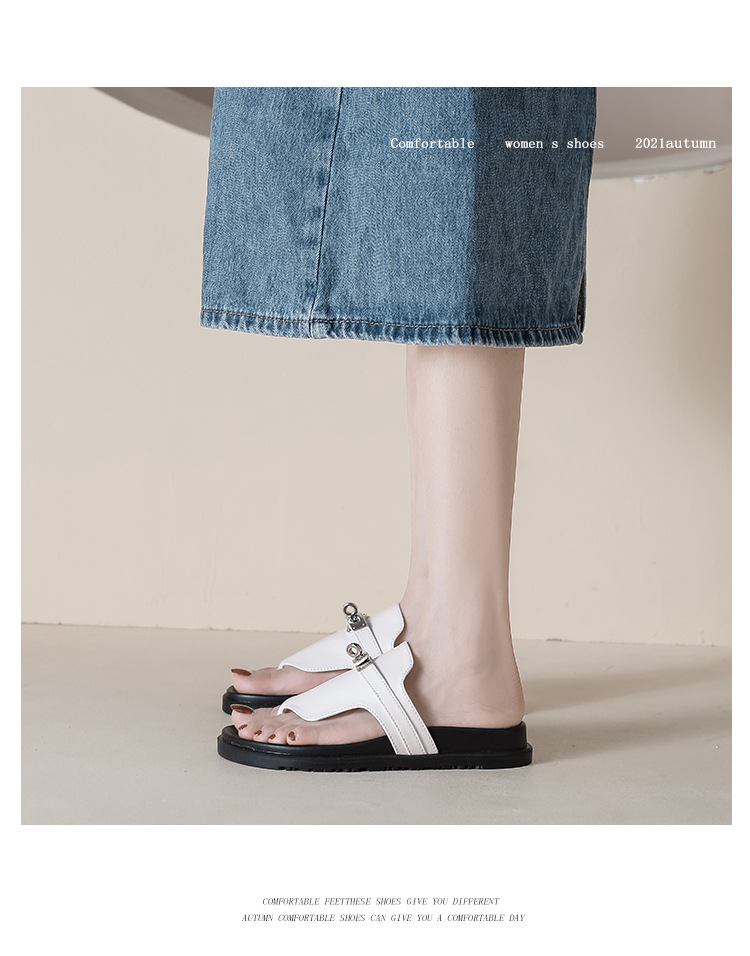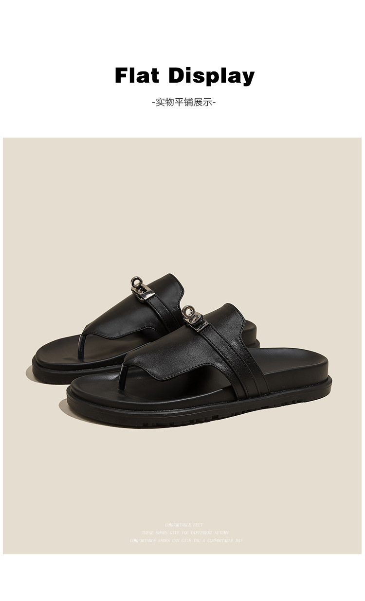 천연 가죽 잠금장치 두꺼운 밑창 캐주얼 플립플롭 여성용 여름 신상 다용도 플랫 샌들