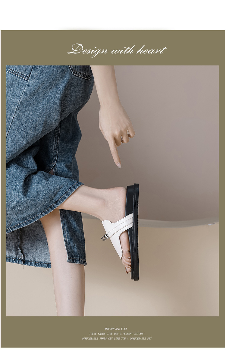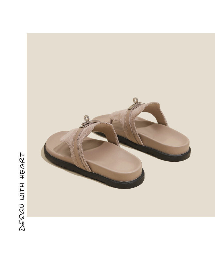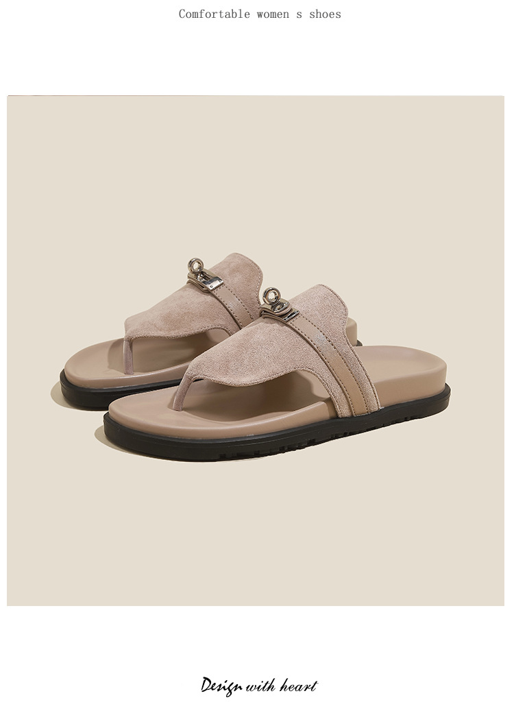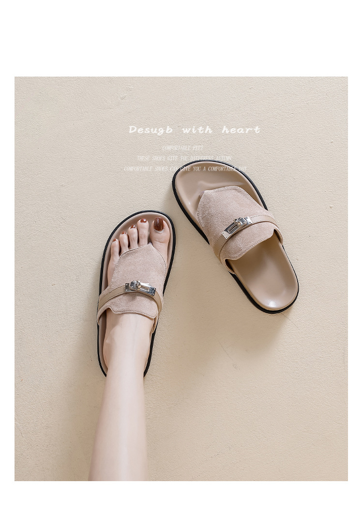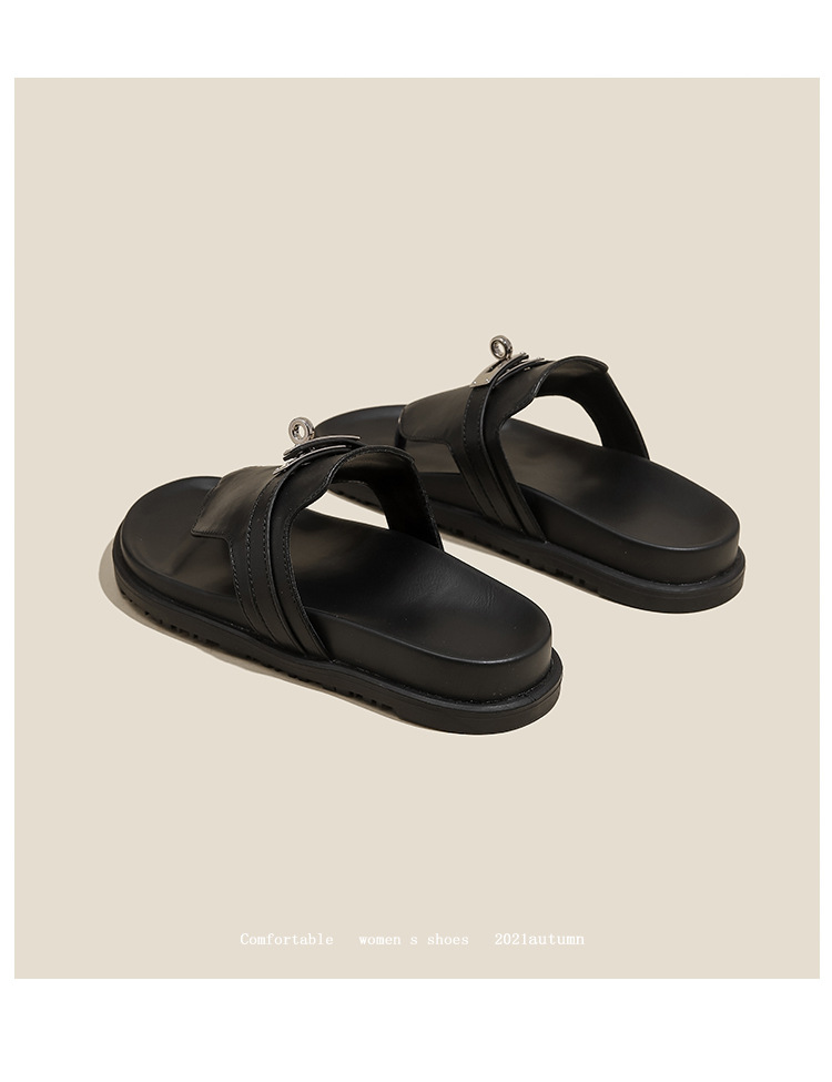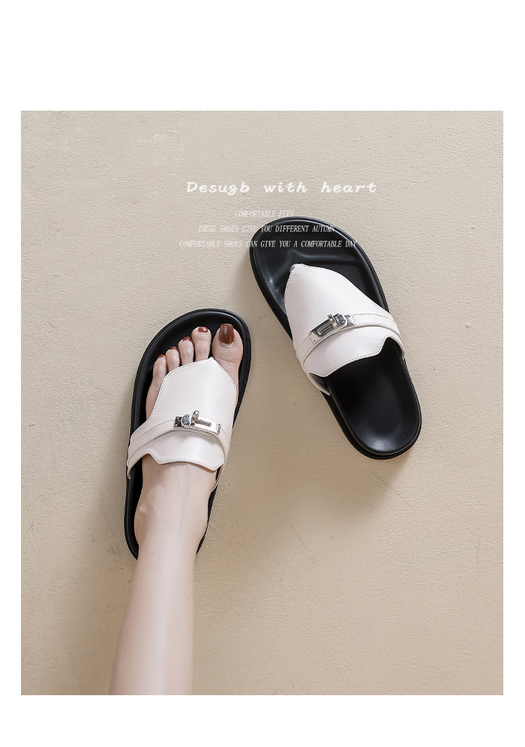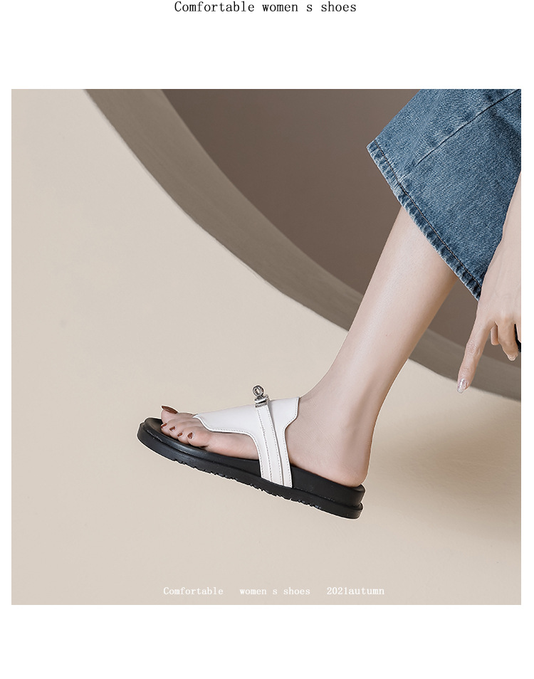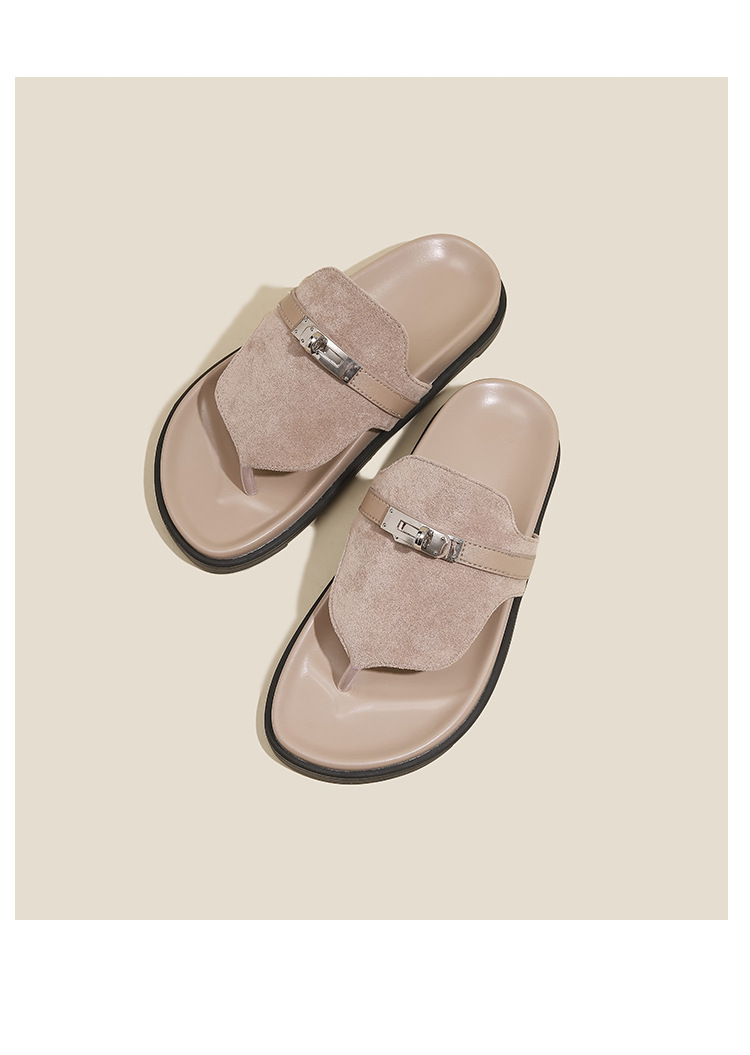 천연 가죽 잠금장치 두꺼운 밑창 캐주얼 플립플롭 여성용 여름 신상 다용도 플랫 샌들
