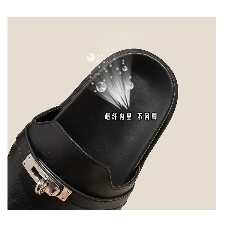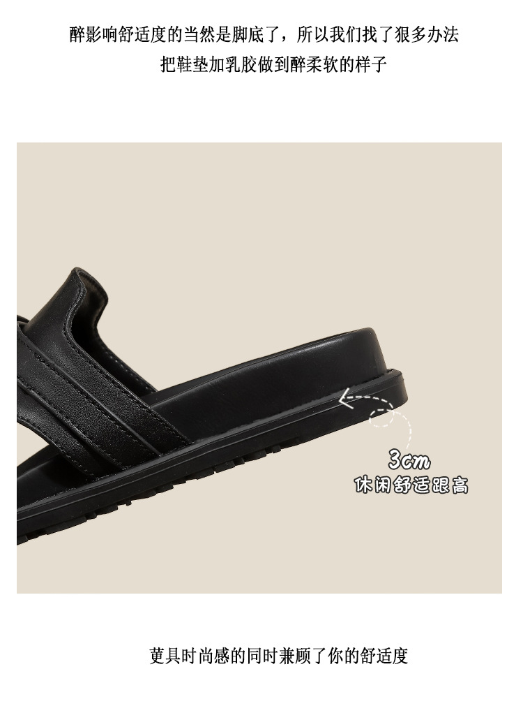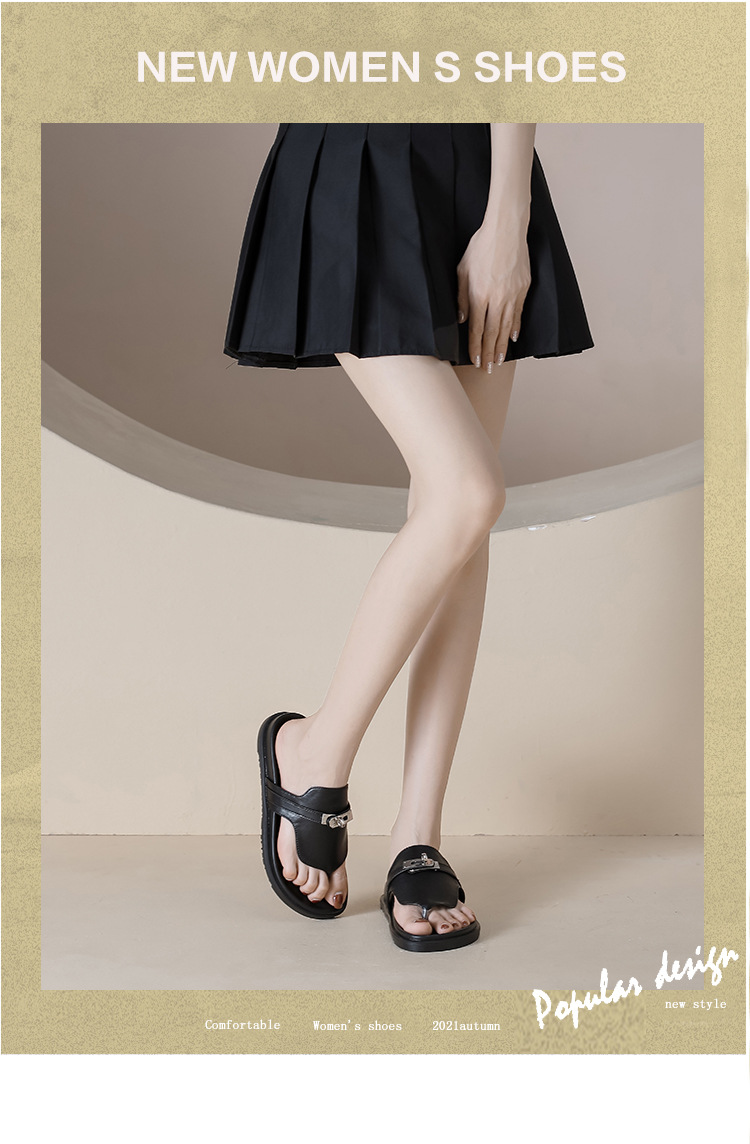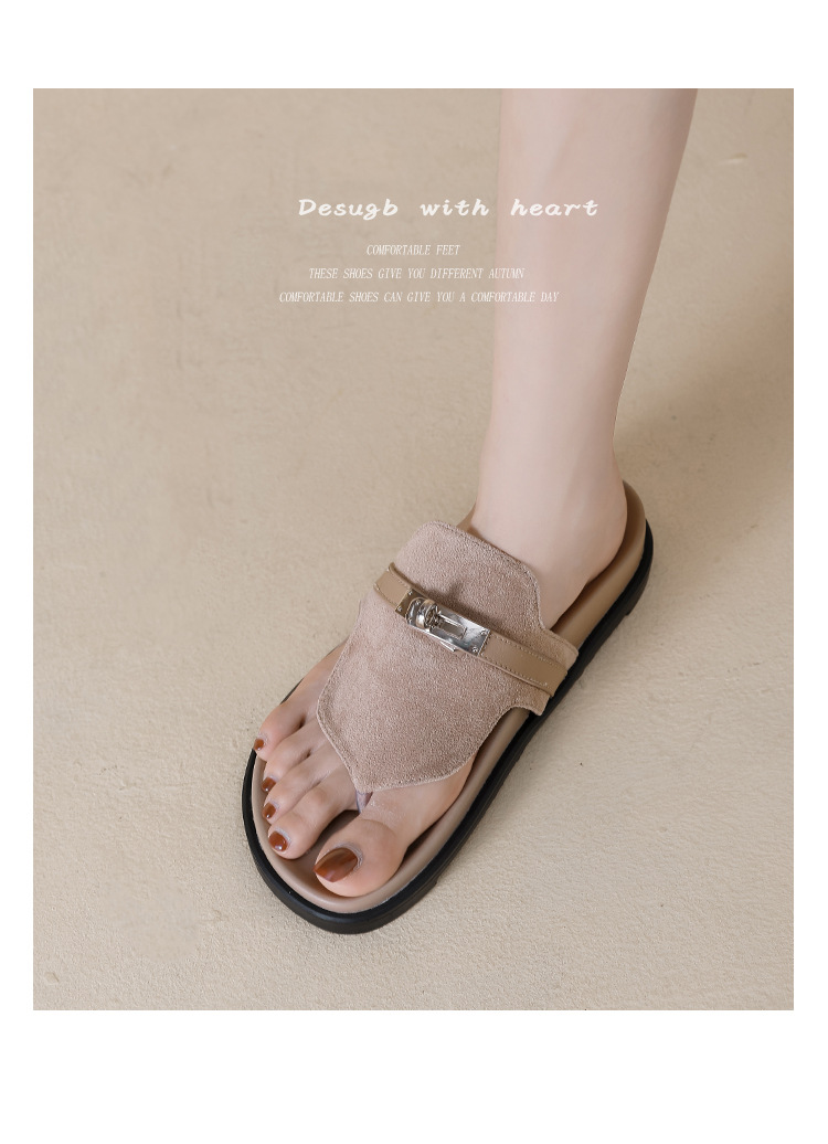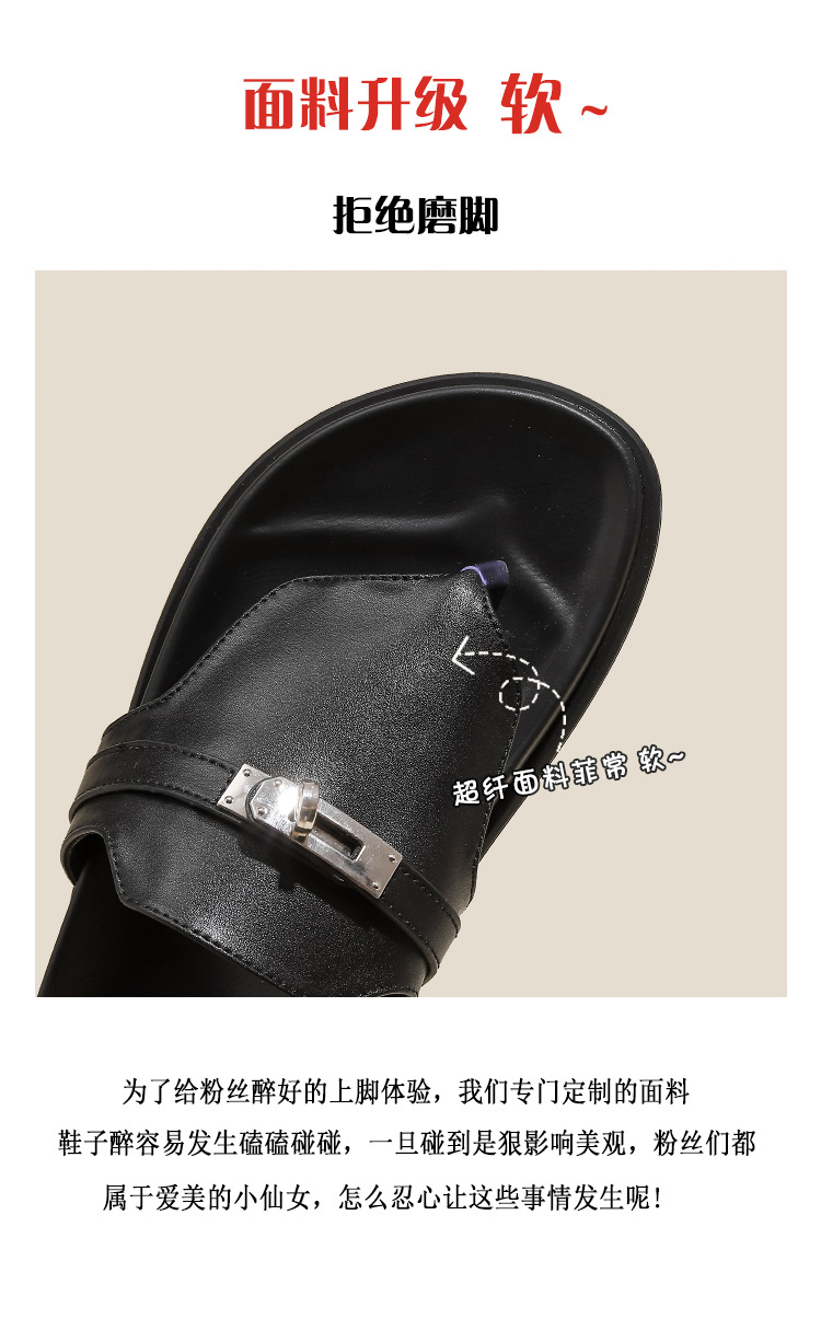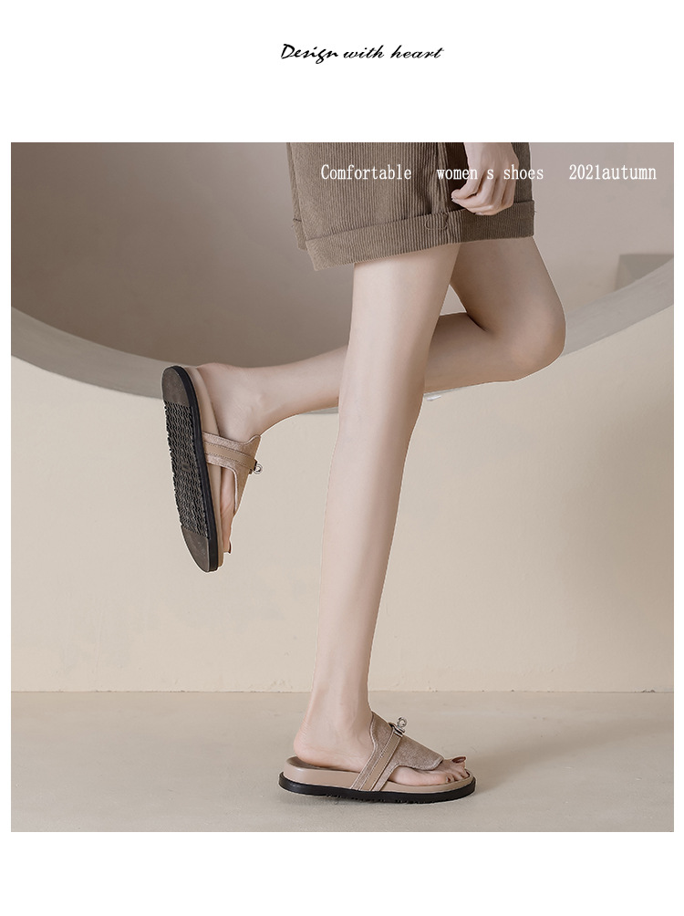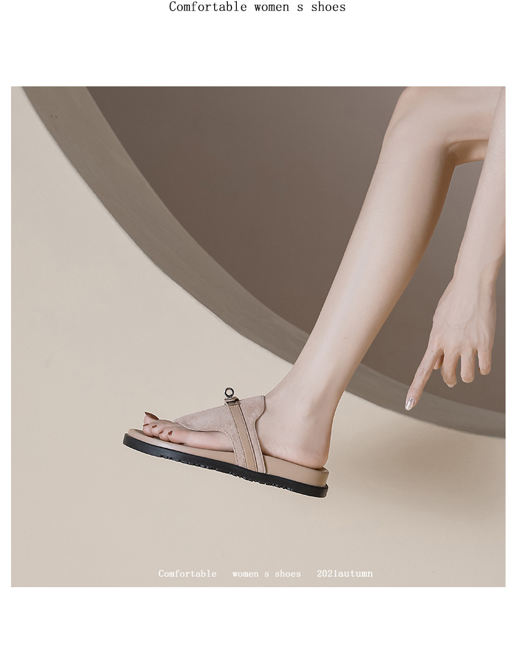 천연 가죽 잠금장치 두꺼운 밑창 캐주얼 플립플롭 여성용 여름 신상 다용도 플랫 샌들