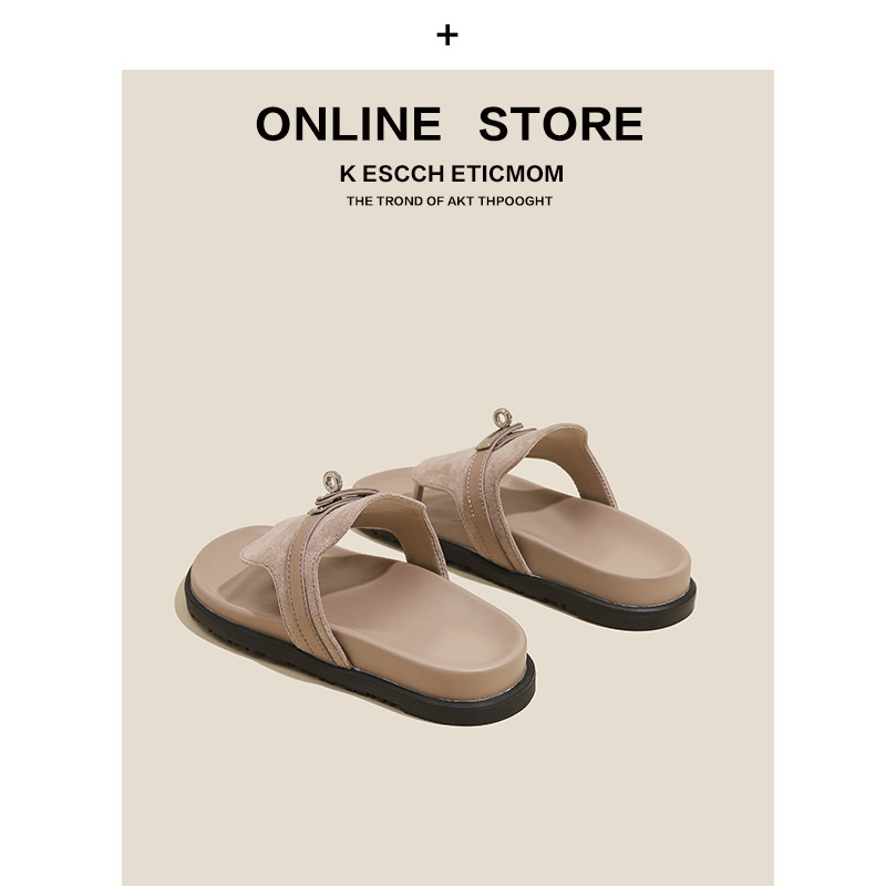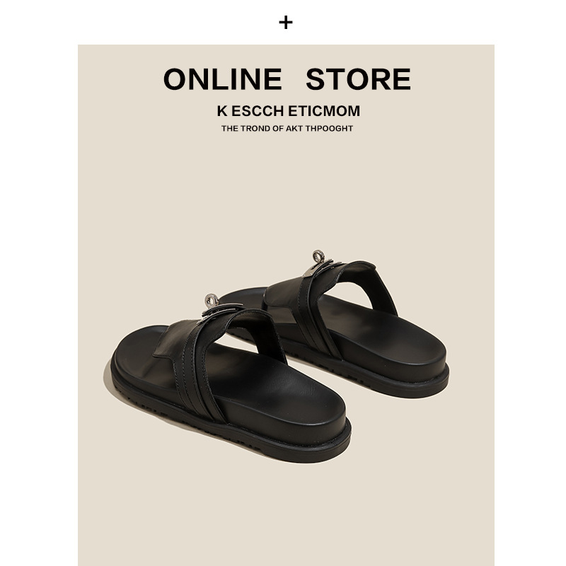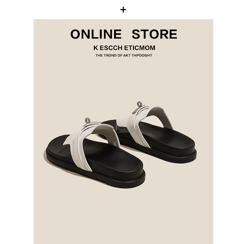 천연 가죽 잠금장치 두꺼운 밑창 캐주얼 플립플롭 여성용 여름 신상 다용도 플랫 샌들스토어 가기