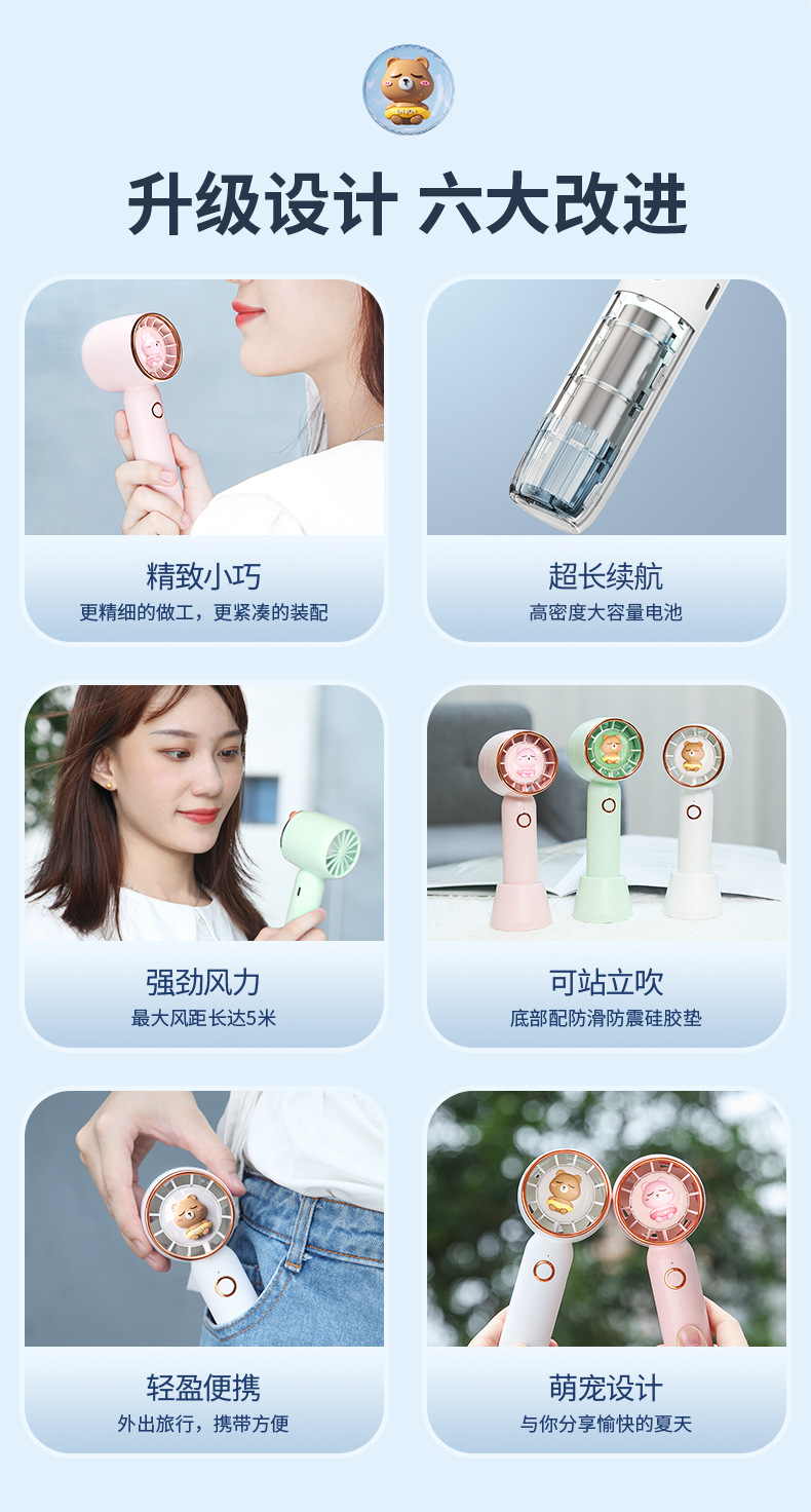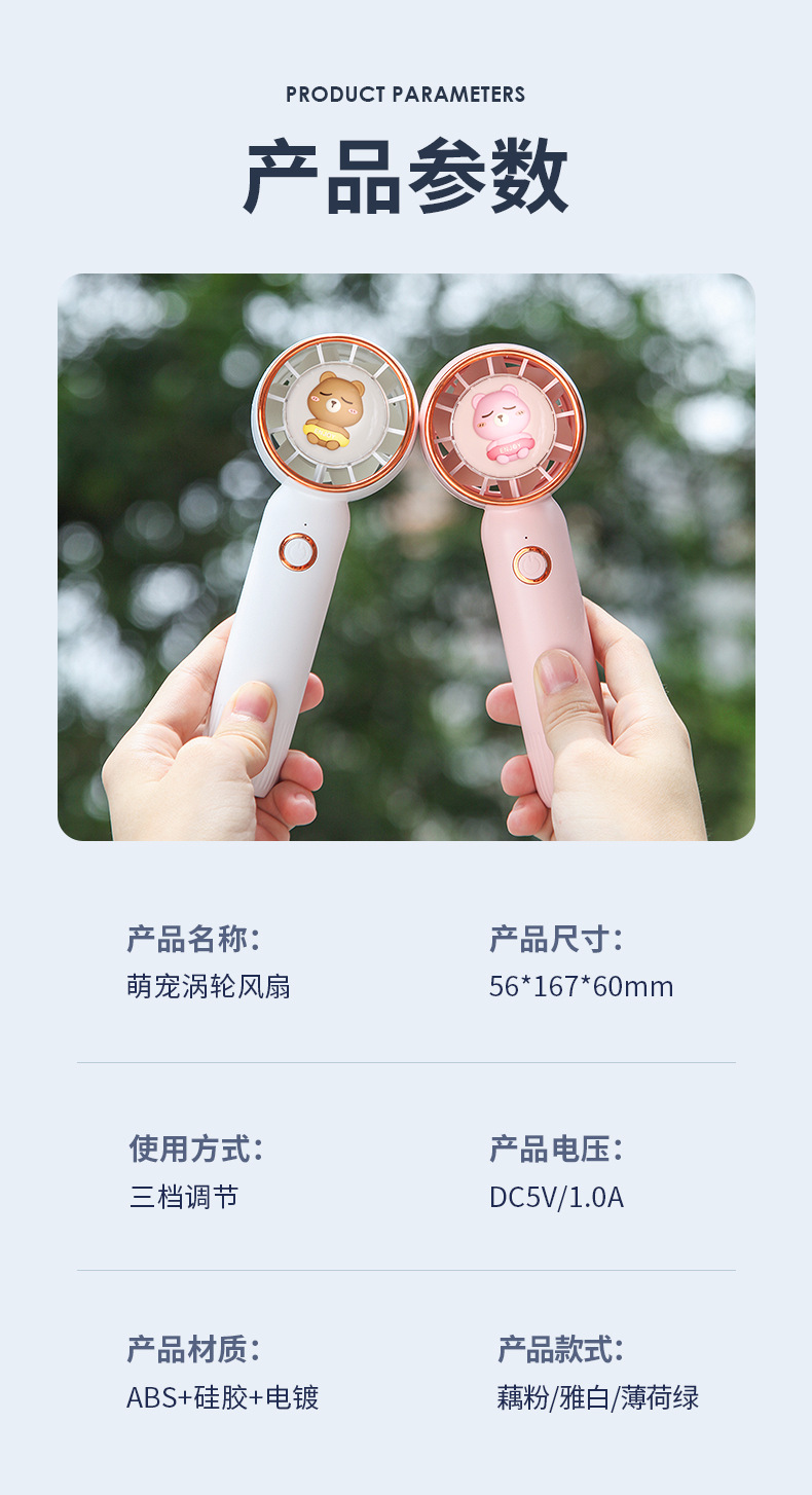 • 핸드 헬드 팬 세 번째 기어 터보 베어 핑크