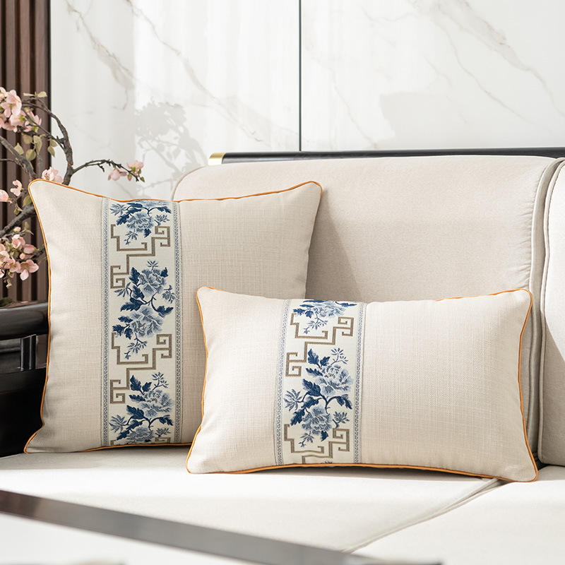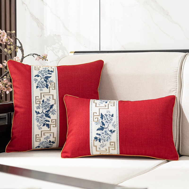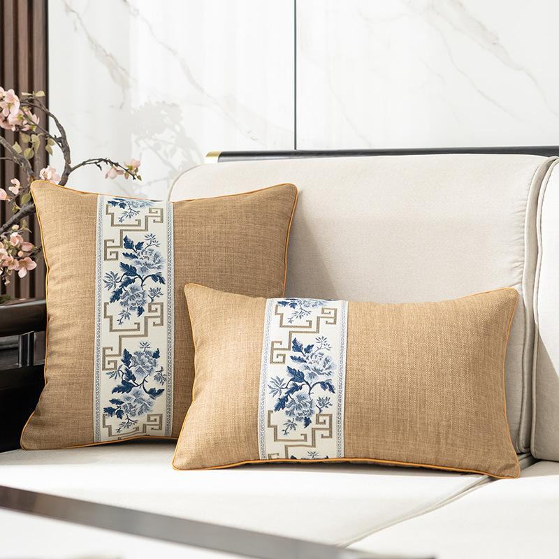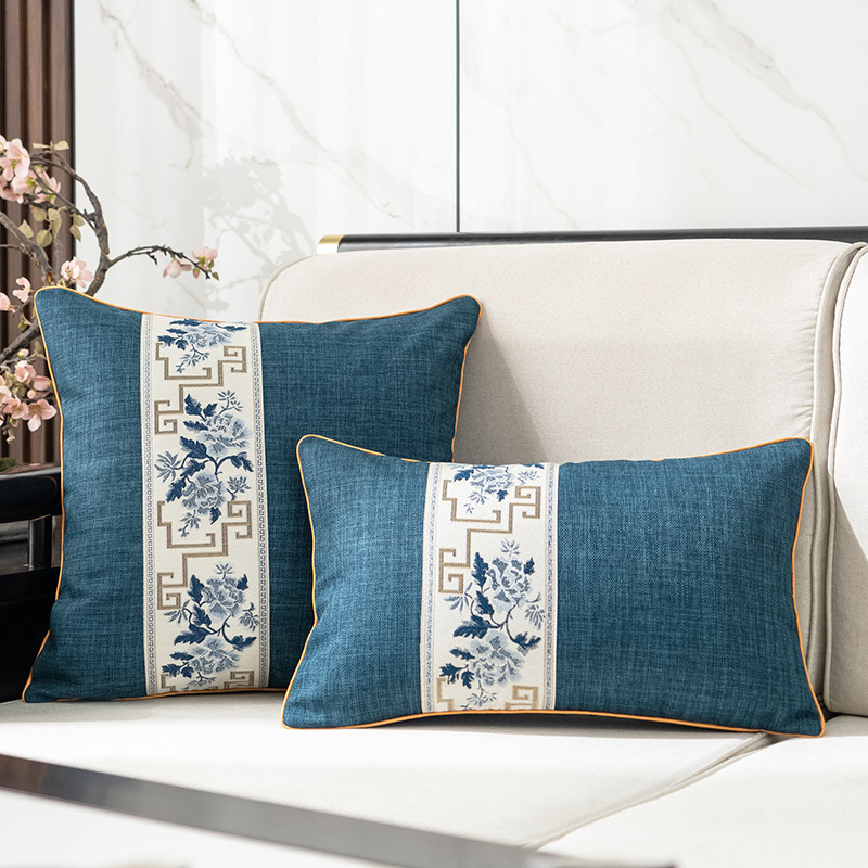 새로운 중국 스타일 베개 케이스 면과 린넨 라이트 럭셔리 자카드 리본 머리맡 베개 거실 마호가니 쿠션 등받이 소파 베개
