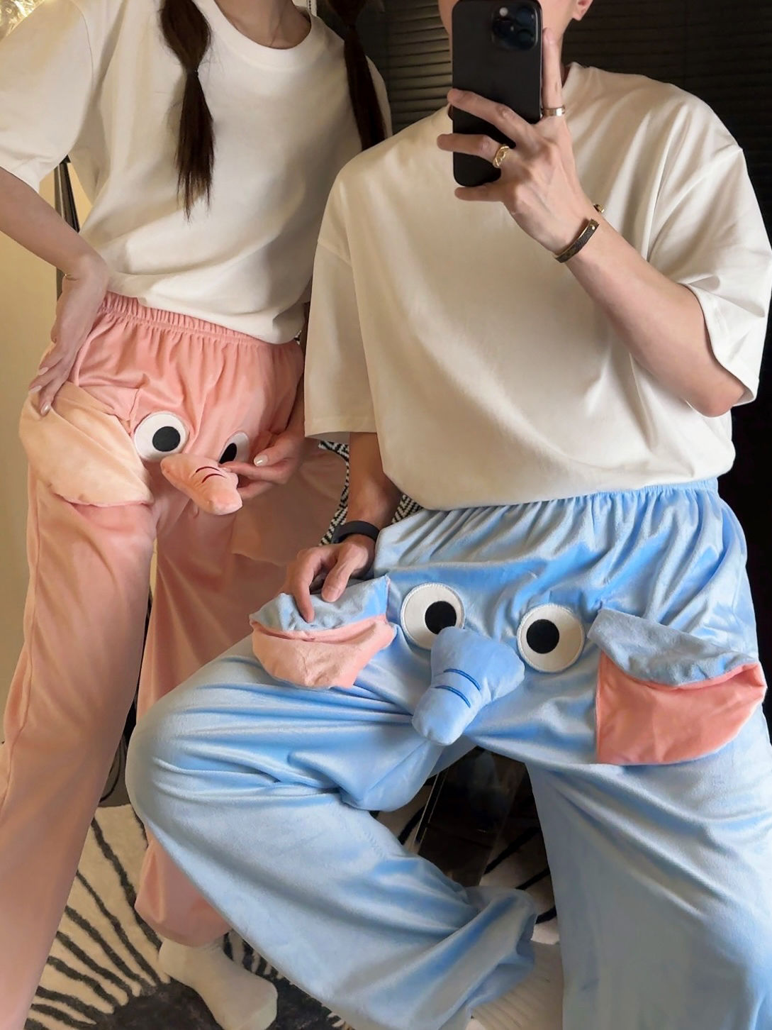 남자 친구 코끼리 잠옷 바지 남자의 여름 귀여운 재미있는 덤보 소녀 커플 비행 코끼리 돼지 반바지