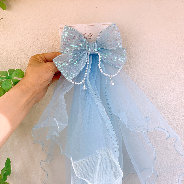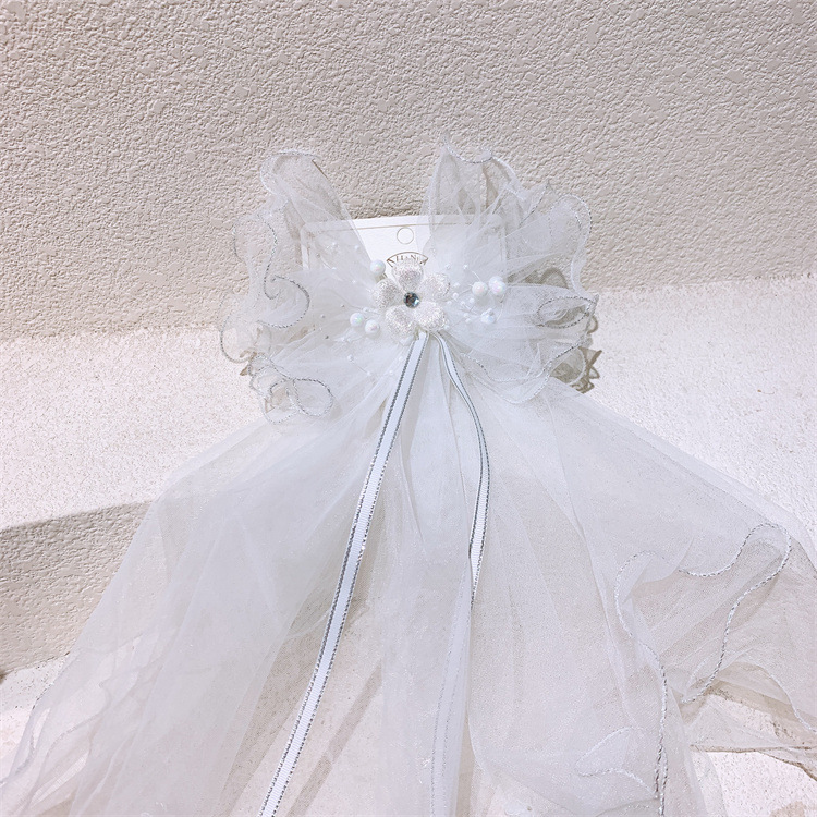 새로운 어린이 거즈 진주 활 머리핀 공주 리본 숄 머리핀 어린 소녀의 베일 탑 클립 모자