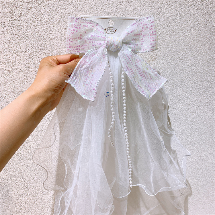 새로운 어린이 거즈 진주 활 머리핀 공주 리본 숄 머리핀 어린 소녀의 베일 탑 클립 모자스토어 가기