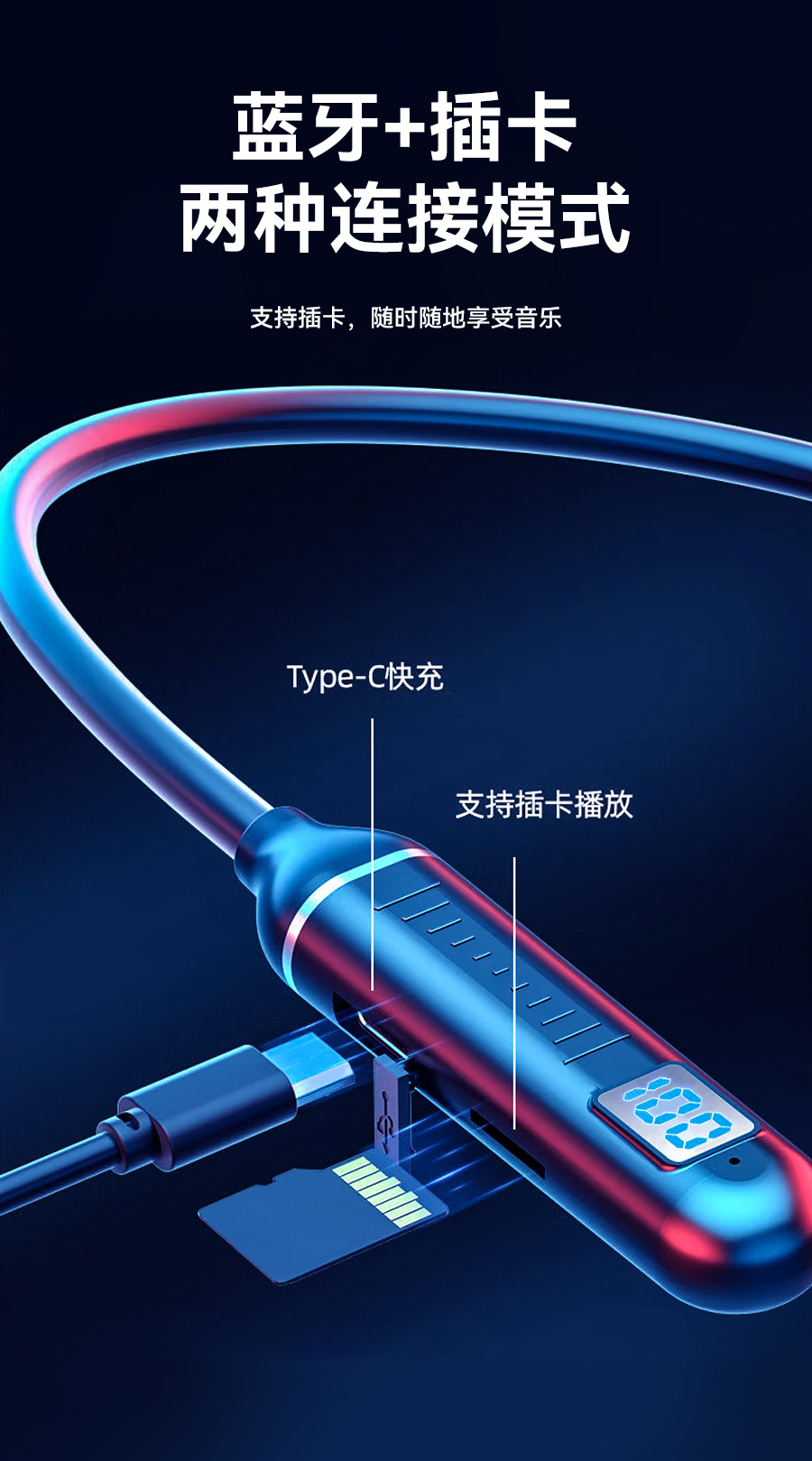 Mai Sheng L11 무선 마그네틱 목 걸이 블루투스 헤드셋 스포츠 대형 파워 서브우퍼 카드 + 디지털 디스플레이