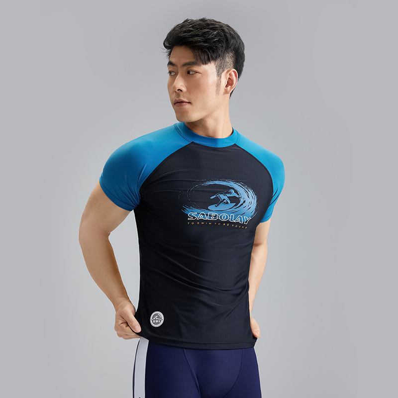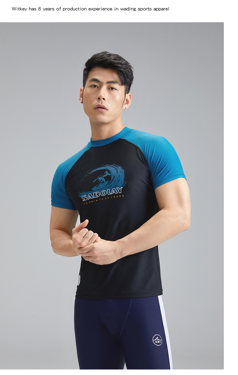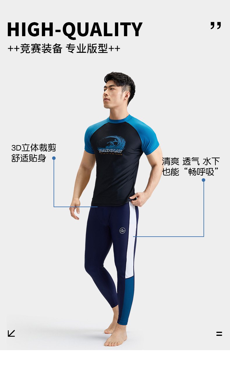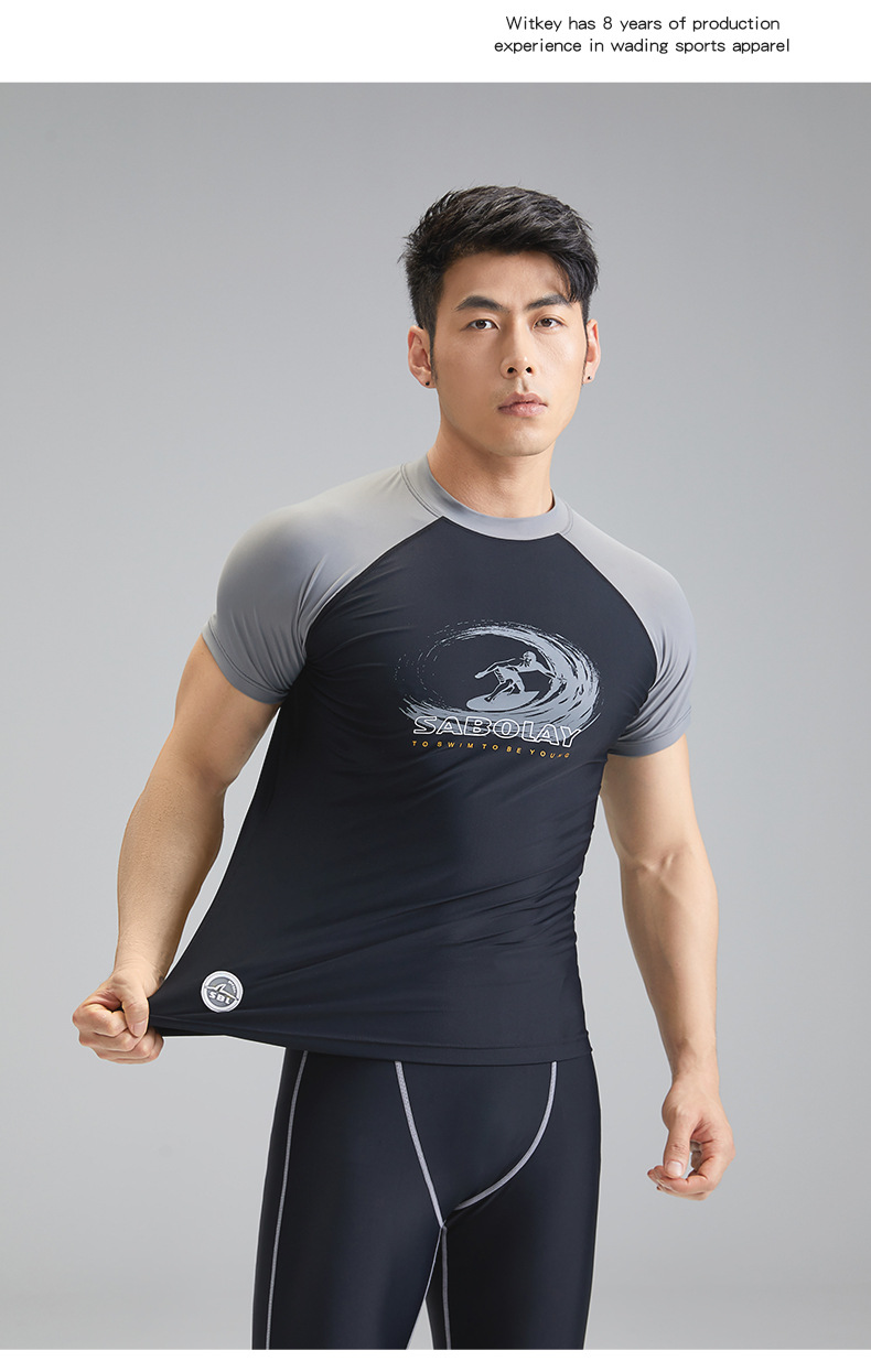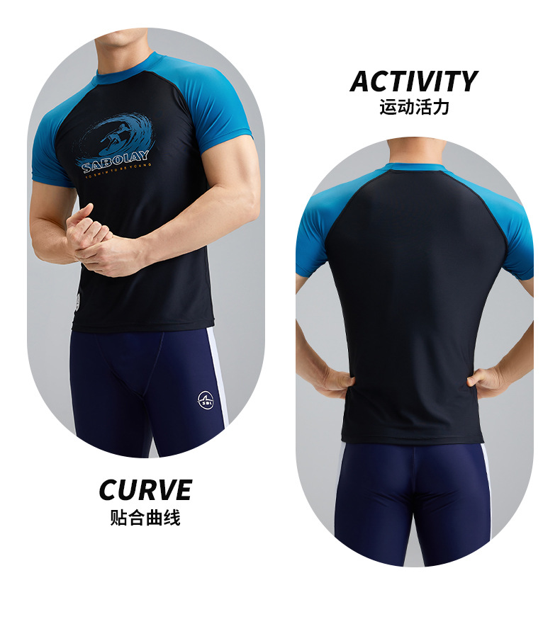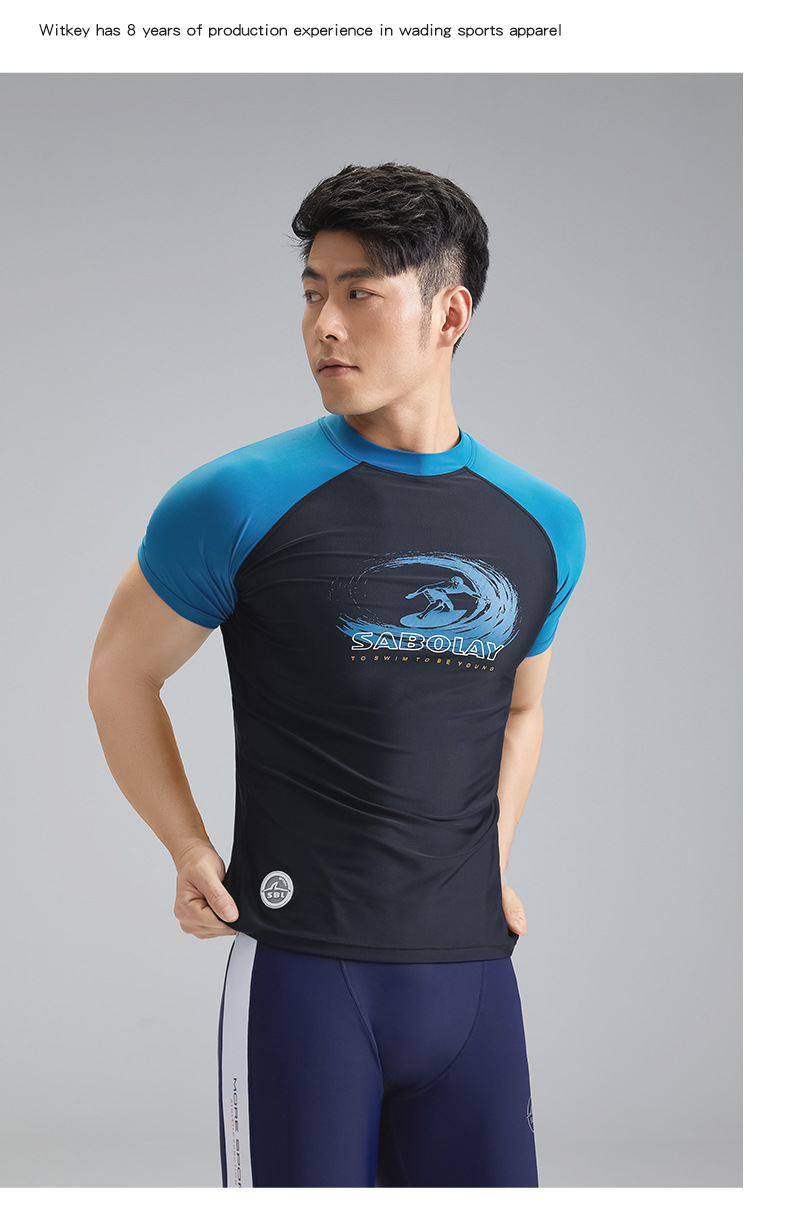Shabola이 국경 간 반팔 남성용 스플릿 수영복 UPF + 자외선 차단 수영복 세트 속건성 통기성 해파리 슈트스토어 가기
