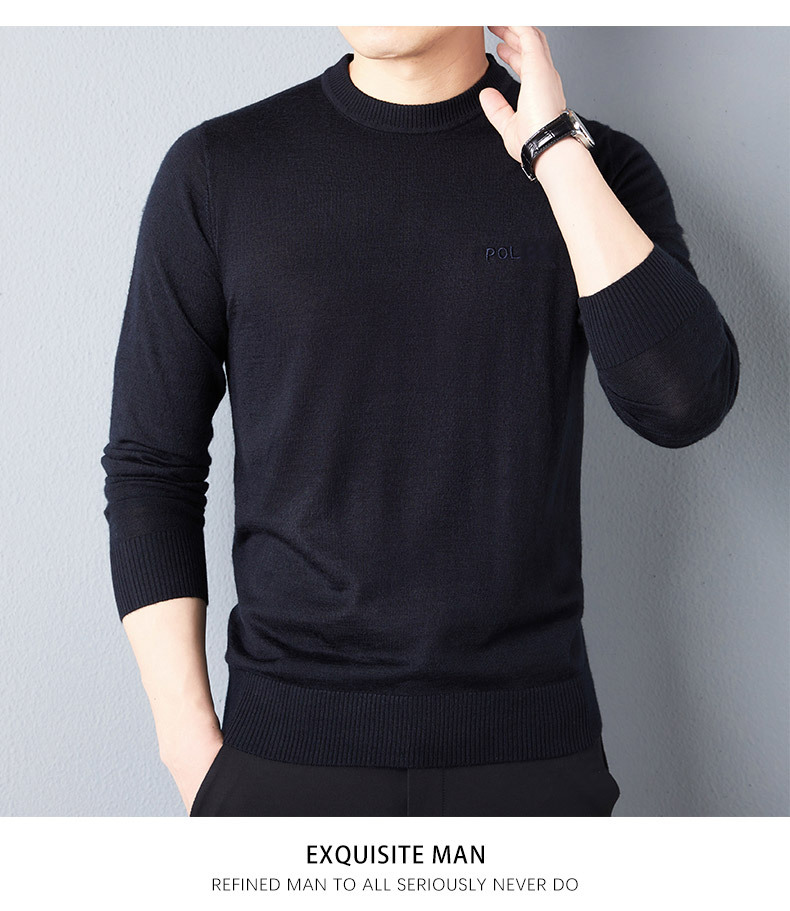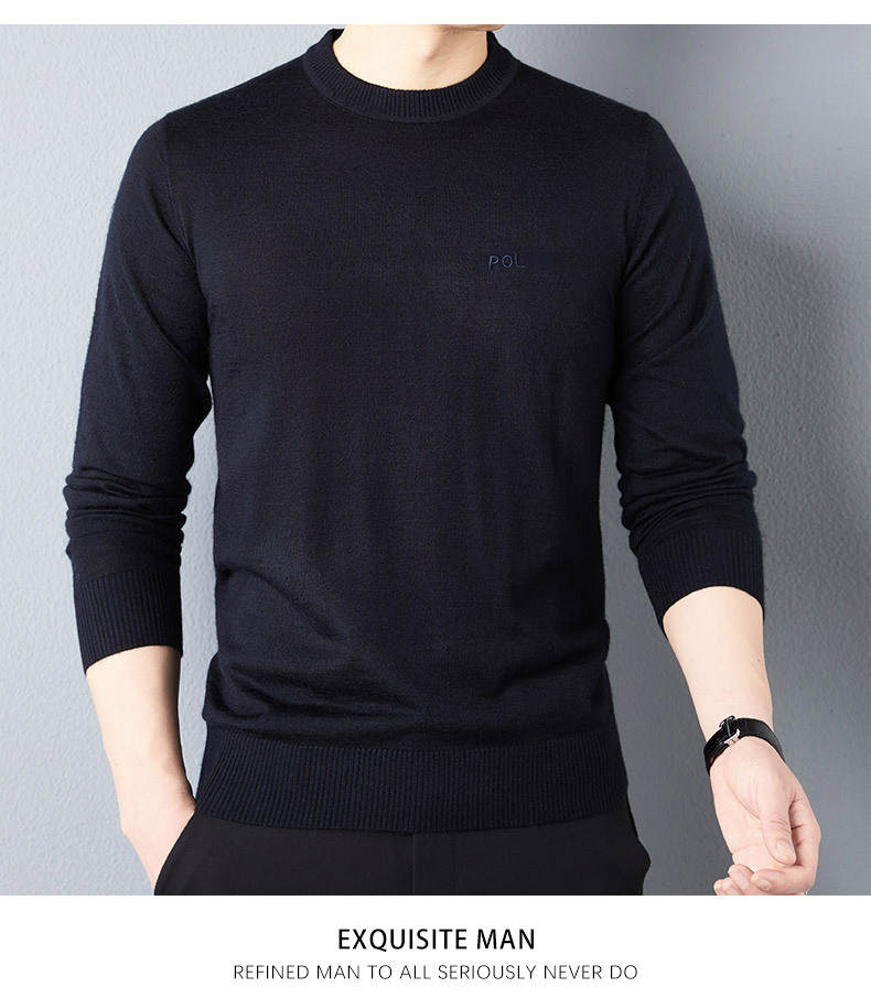 겨울 보안복 울 스웨터 남성용 라운드넥 스웨터 단색 베이스 셔츠 네이비 블루 근무용 긴팔 스웨터 출퇴근용스토어 가기
