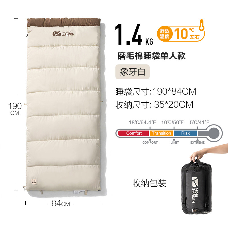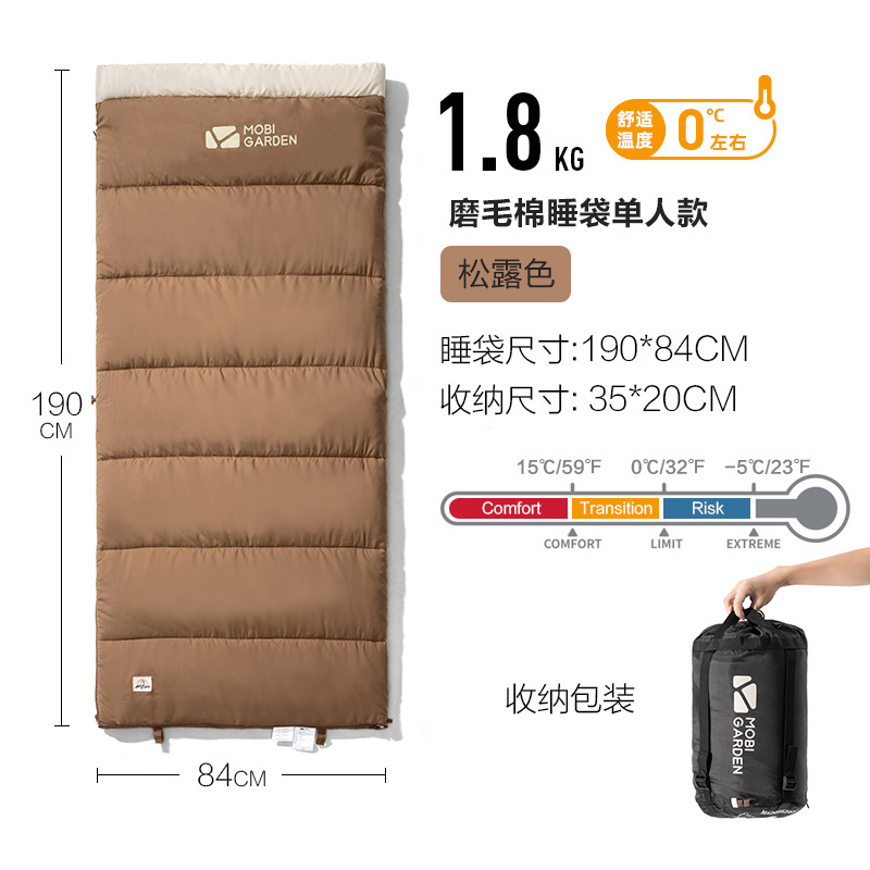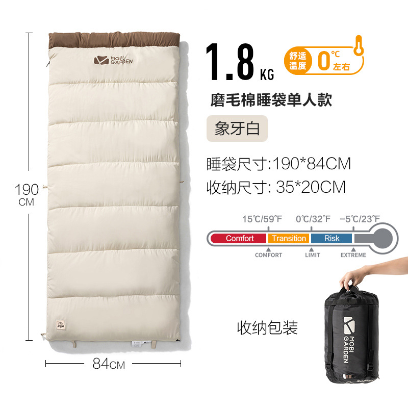 Mu Gaodi 초승달형 침낭 캠핑 휴대용 기모 두꺼운 침낭 성인용 가을 겨울 1인 및 2인용스토어 가기