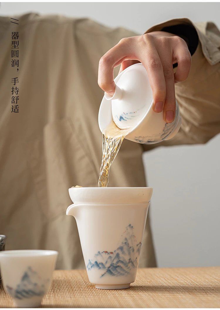 손으로 그린 수엣 옥 도자기 쿵푸 차 세트 세트 홈 오피스 주전자 중국 뚜껑 그릇 차 컵 고급 선물 상자