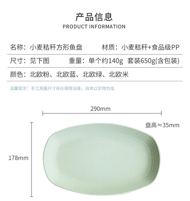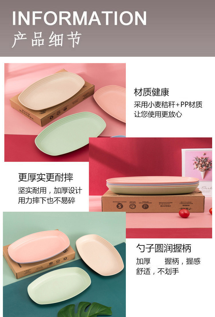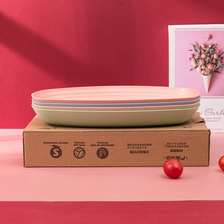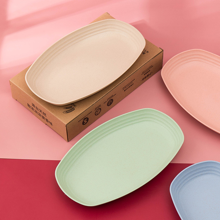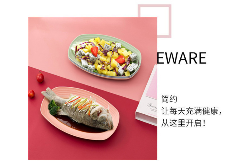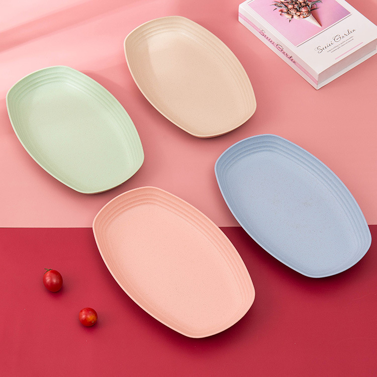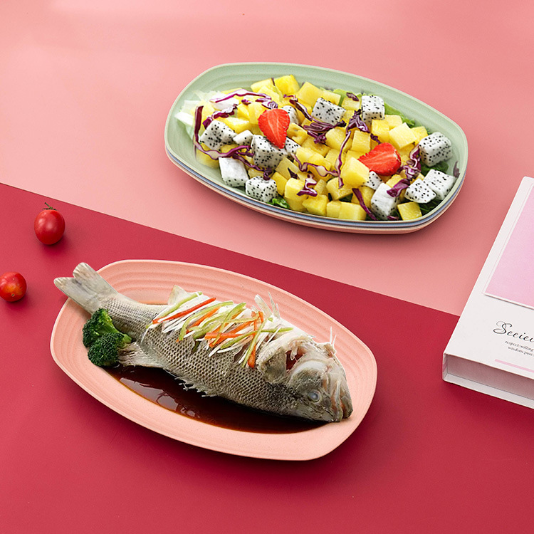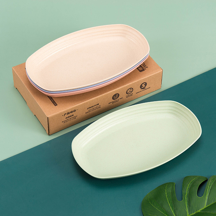 크로스 보더 아마존 밀 밀짚 접시 홈 레스토랑 타원형 접시 생선 접시 세트 인쇄 로고스토어 가기