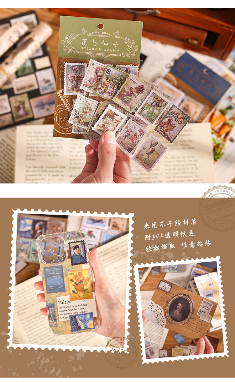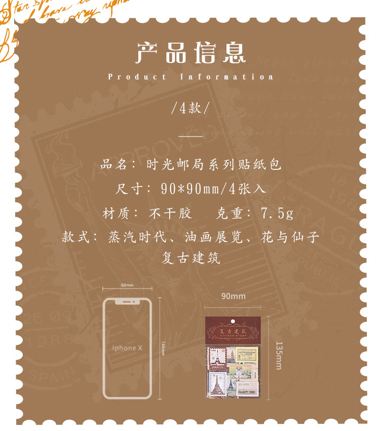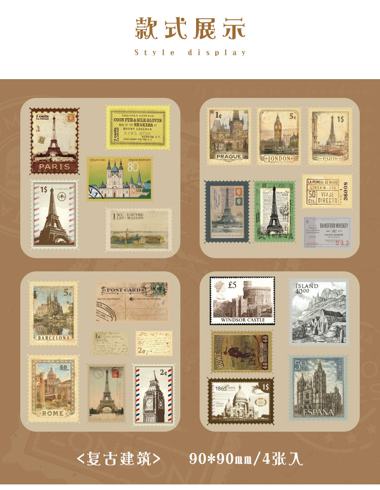 레트로 우표 핸드북 스티커 팩 시간 우체국 시리즈 예술적 핸드북 일기 재료 DIY 장식 스티커스토어 가기