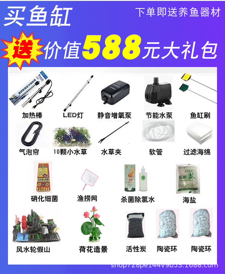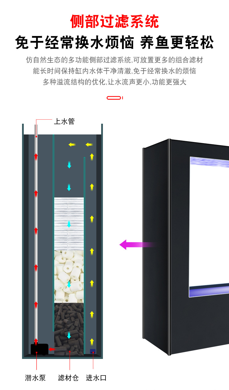 2025년형 초백유리 무필수수조 거실용 대형 자가순환 생태 수족관 어항