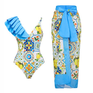 2025欧美新款连体印花泳衣女时尚泳装雪纺裙泳装套装热卖爆款现货