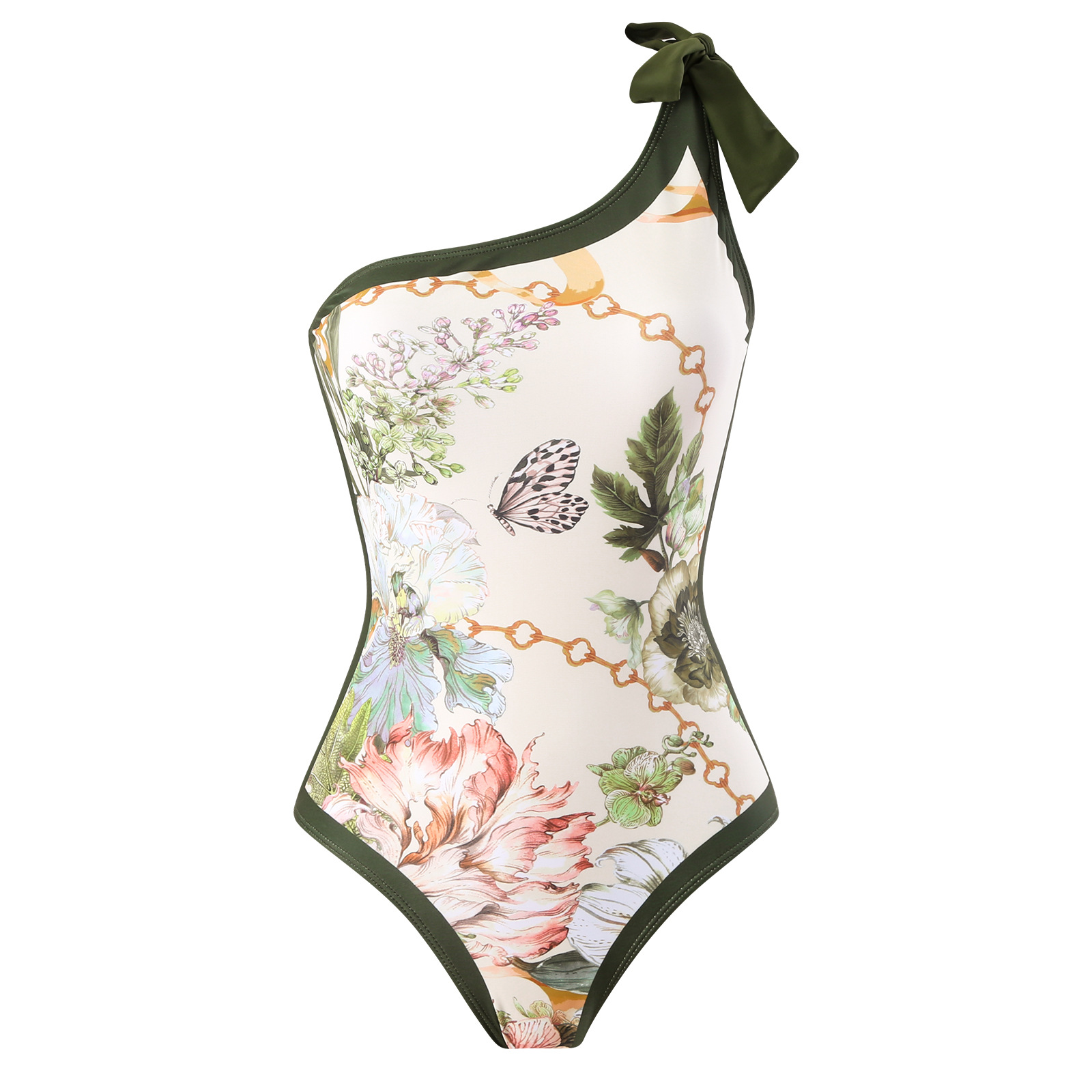 2025 신상 섹시 원피스 수영복 여성 유럽풍 레트로 원숄더 수영복 쉬폰 비치 드레스 수영복 세트