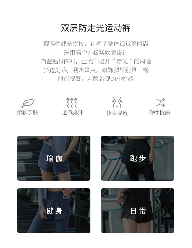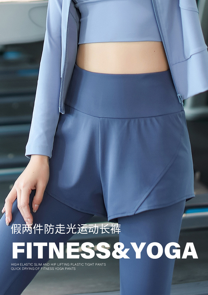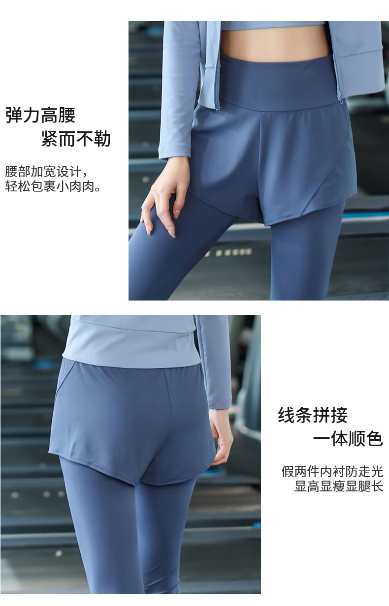 하이 웨이스트 스포츠 바지 여성용 요가 피트니스 스트레치 속건 가짜 투피스 눈부심 방지 요가 바지 겉옷 쉐이핑 스포츠 바지
