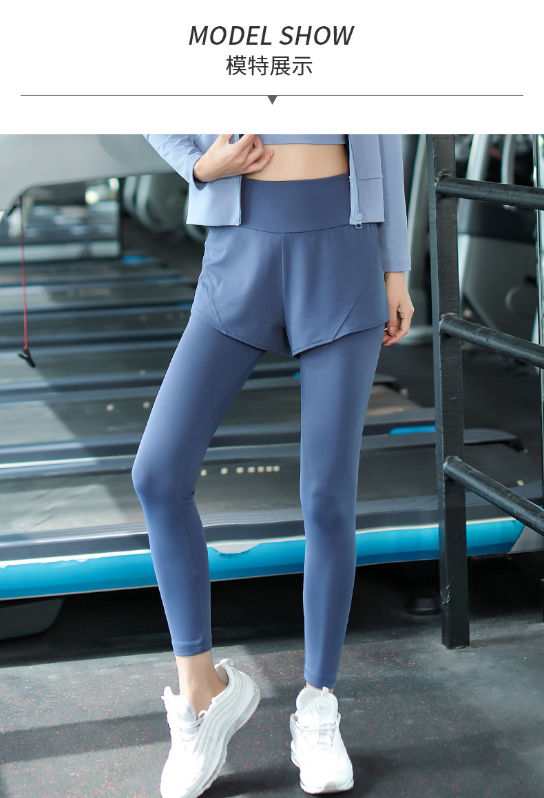 하이 웨이스트 스포츠 바지 여성용 요가 피트니스 스트레치 속건 가짜 투피스 눈부심 방지 요가 바지 겉옷 쉐이핑 스포츠 바지스토어 가기