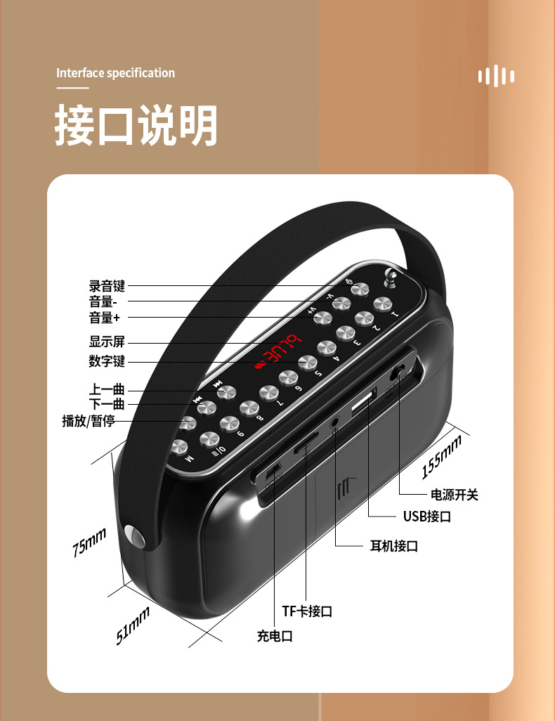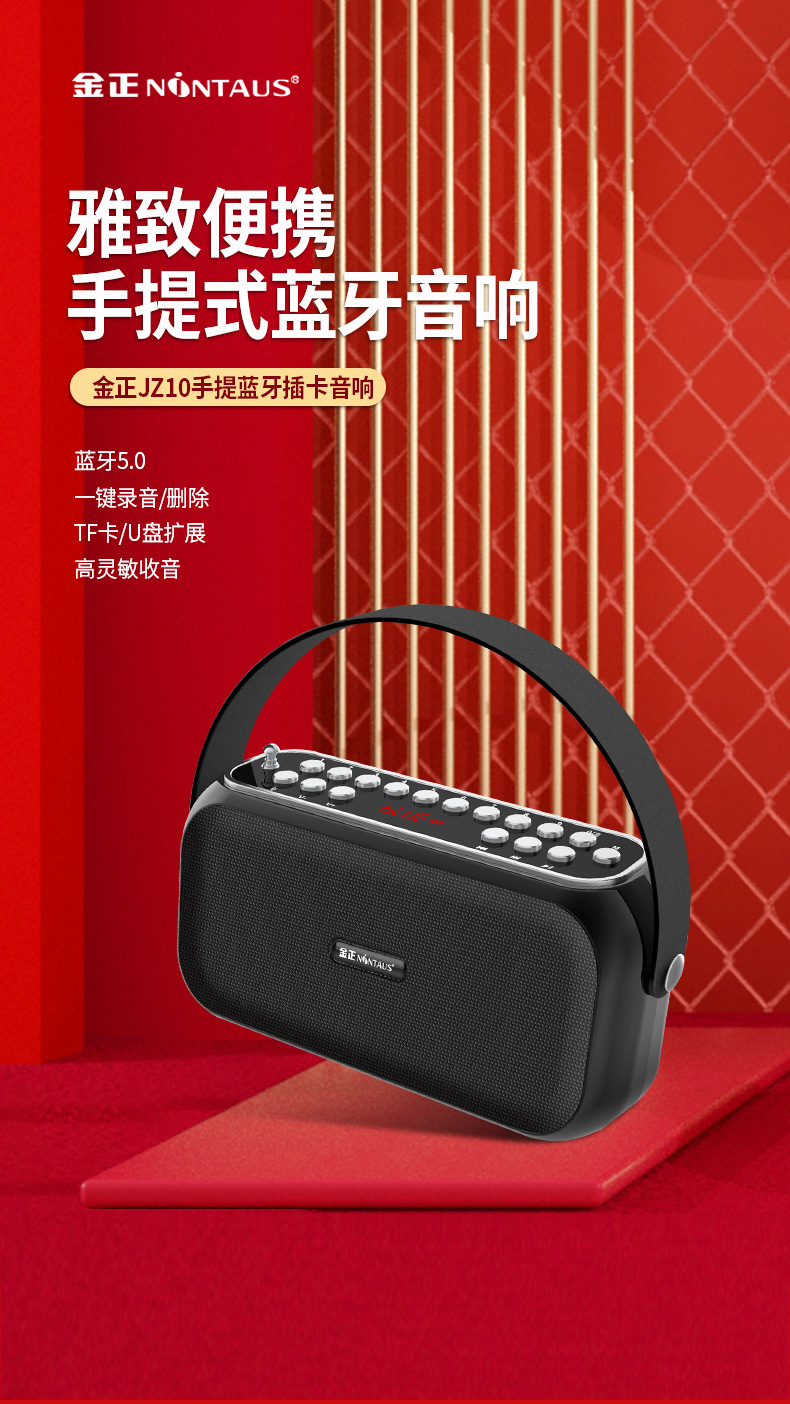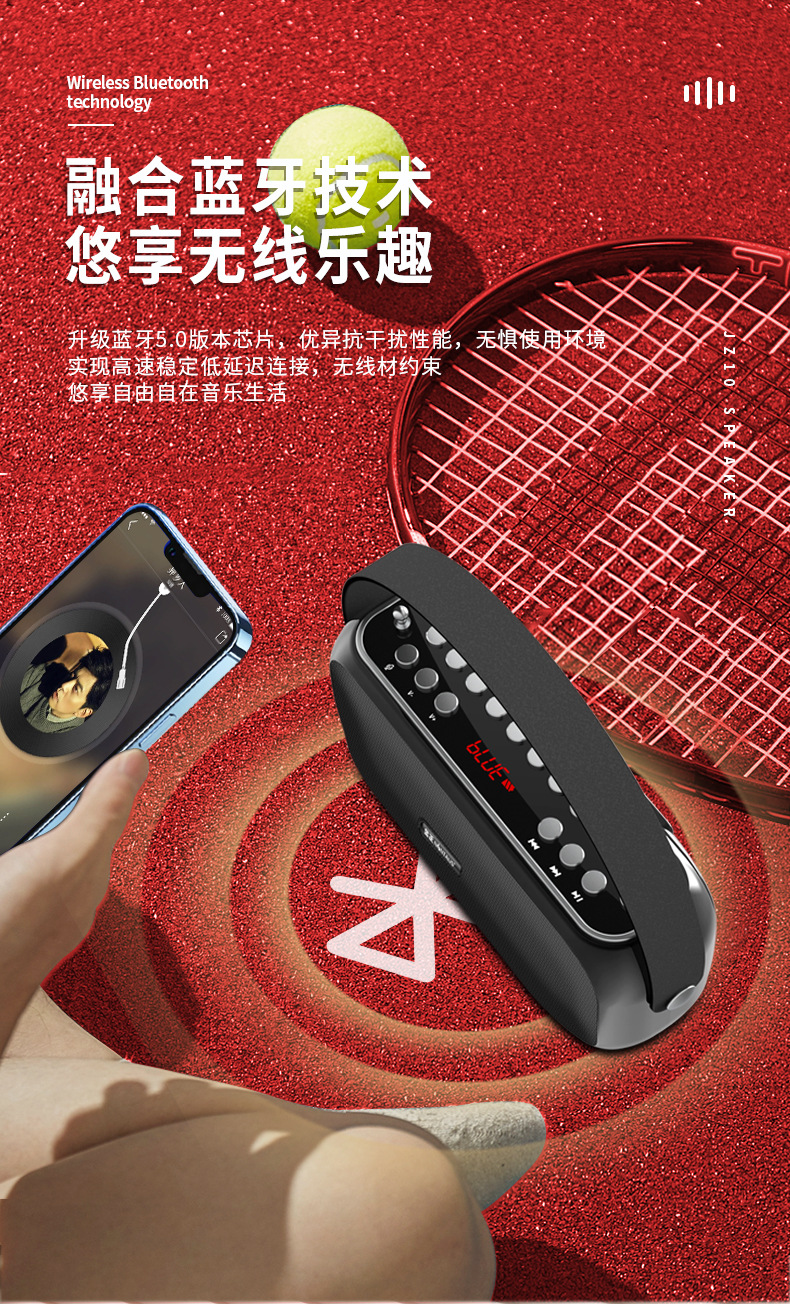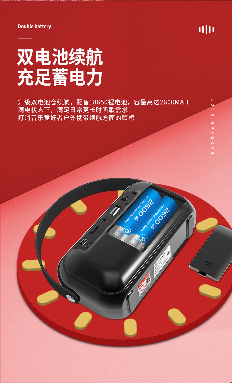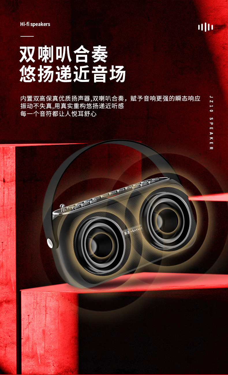 Jinzheng JZ10 무선 블루투스 스피커 대용량 휴대용 야외 홈 오디오 자동차 과체중 서브 우퍼