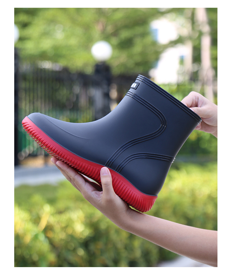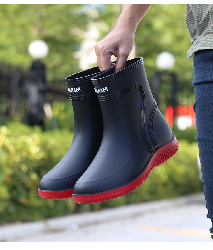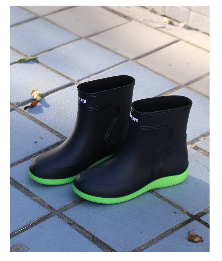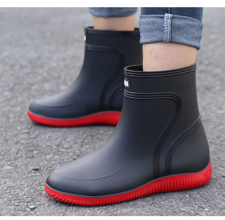 방수 신발 남성과 여성의 레인 슈즈 패션 짧은 튜브 두꺼운 따뜻한 고무 신발 작업 미끄럼 방지 낚시 주방 레인 부츠 도매