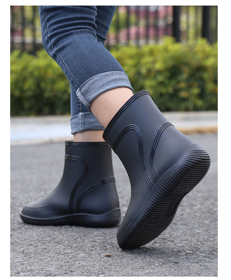 방수 신발 남성과 여성의 레인 슈즈 패션 짧은 튜브 두꺼운 따뜻한 고무 신발 작업 미끄럼 방지 낚시 주방 레인 부츠 도매스토어 가기