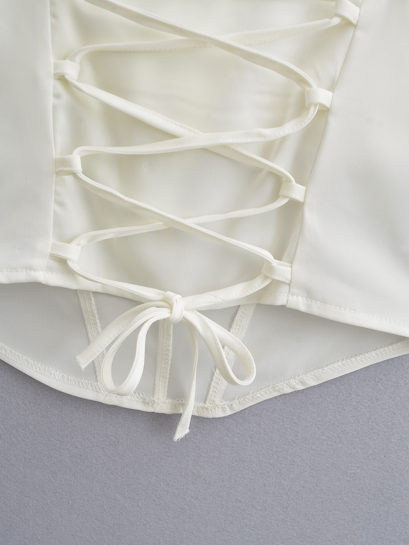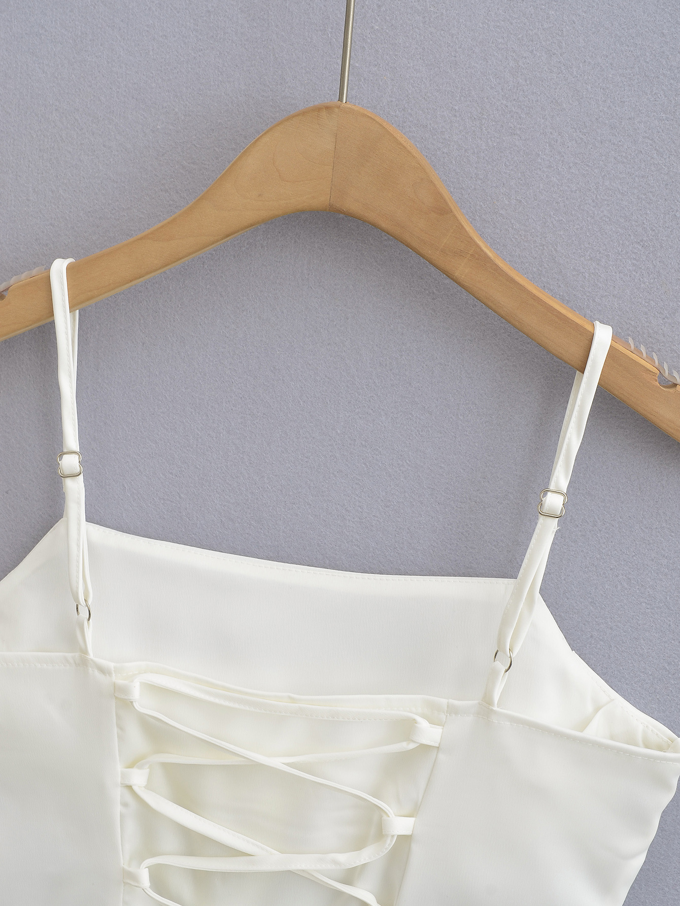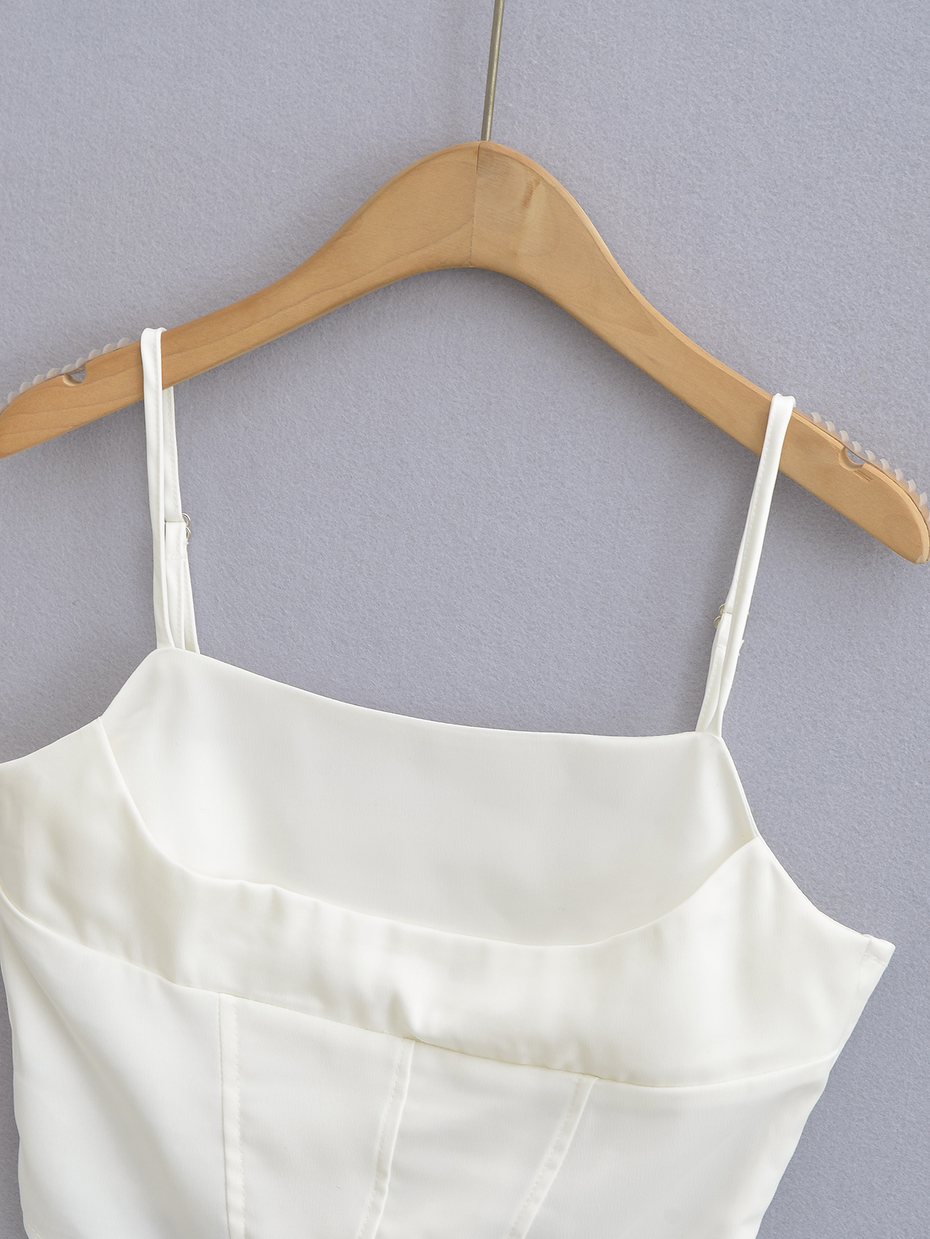 순수한 욕망 스타일 피시본 라인 곡선 조끼 짧은 배꼽 뜨거운 소녀 슬링 슬림 핏 백 크로스 스트랩 섹시한 조끼